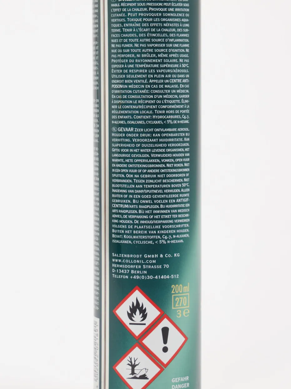 Das 1909 Supreme Wax-Spray von Collonil ist ein Pflege- und Imprägnierspray für Glattleder sowie Brush-, Nappa- und Antikleder. Angereichert mit wertvollen Ölen und Wachsen wird das Leder nachhaltig und hochwirksam vor Nässe, Staub und Verschmutzungen geschützt. Es verleiht dem Leder eine geschmeidige Pflege und einen angenehmen Griff. – Größe: 200 ml (79,75€/L)- Anwendung: Aus mindestens 20cm Entfernung bei belüfteten Räumen oder an frischer Luft gleichmäßig auf die gereinigte Materialoberfläche sprühen, gut trocknen lassen und anschließend polieren oder aufrauen. -Warnhinweise: Vorsicht! Unbedingt beachten! Gesundheitsschäden durch Einatmen möglich! Nur im Freien oder bei guter Belüftung verwenden! Nur wenige Sekunden sprühen! Großflächige Leder- und Textilerzeugnisse nur im Freien besprühen und gut ablüften lassen! Von Kindern fernhalten! Extrem entzündbares Aerosol. Behälter steht unter Druck: Kann bei Erwärmung bersten. Verursacht Hautreizungen. Kann Schläfrigkeit und…