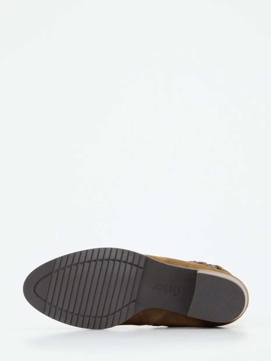 Western-Eleganz im modernen Gewand.Gabor präsentiert diese klassische Stiefelette für Damen in einer eleganten Ankle-Boot-Silhouette. Ob für das Büro oder entspannte Herbsttage in der Stadt: Das feine, samtig angeschliffene Veloursleder in Cognacbraun wirkt zeitlos und hochwertig. Eine silberfarbene Schnalle mit Nieten setzt zusammen mit einem schmalen Ziergurt dezente Western-Akzente. Dank flachem Blockabsatz in Holzoptik, profilierter Gummisohle und weichem Wechselfußbett überzeugt der Stil auch funktional. Die matte Oberfläche unterstützt den „Quiet Luxury“-Trend mit Understatement. Kombiniert mit Naturtönen entsteht ein harmonischer Look. Komfort und Zurückhaltung – charakterstark im Stil von Gabor.