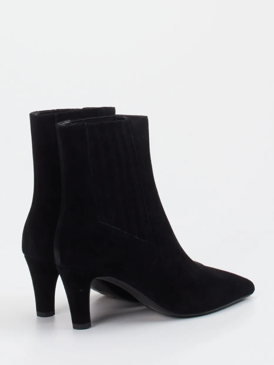 Die Ankle Boots von Di Lauro vereinen minimalistisches Design mit moderner Eleganz. Spitzer Schnitt, elastischer Einstieg und samtiges Veloursleder sorgen für einen stilvollen Auftritt.