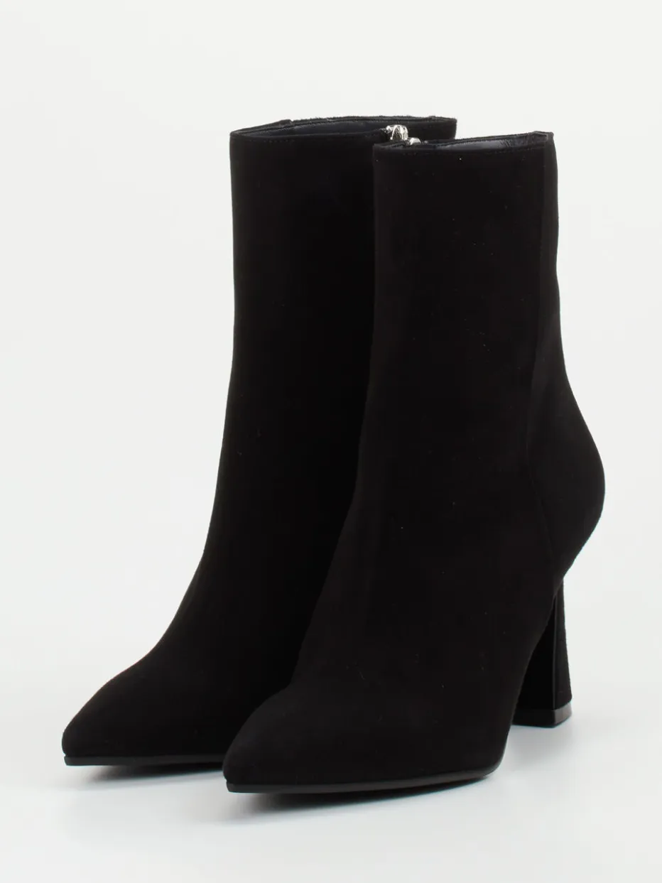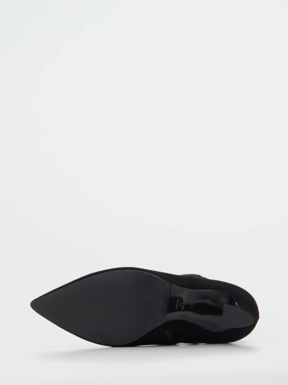 Für festliche Abende oder formelle Events geschaffen, überzeugt das Modell mit schwarzem Veloursleder, samtig angeschliffen und matt im Finish. Der spitz zulaufende Leisten und der skulptural geformte, leicht ausgestellte Absatz unterstreichen das minimalistische Design. Ein Innenseitenreißverschluss sorgt für Komfort, während die glatte Gummisohle mit Lederanteil dezent bleibt. Modisch aktuell im Trendfeld „Quiet Luxury“, passt der Schuh zu klar geschnittenen Mänteln oder monochromen Outfits.