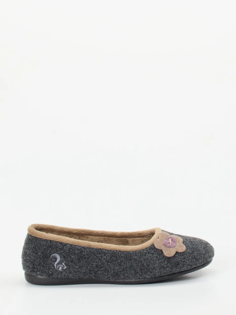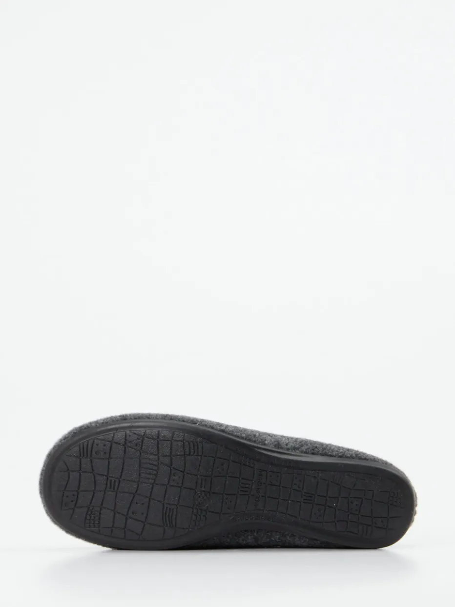 Für entspannte Momente zu Hause bietet das Modell ein angenehm warmes Tragegefühl – dank kuschelig gefüttertem Textilinnenleben und anthrazitfarbenem Wollfilz mit weich-filziger Oberfläche. Die harmonisch eingefasste Kante aus Beigebraun und die fliederfarbene Filzblume setzen dezente Akzente. Die runde Form und der bequeme Schlupfeinstieg unterstreichen den Komfortanspruch, während die profilierte Gummisohle für sicheren Halt auf glatten Böden sorgt. Inspiriert von skandinavischem Minimalismus und Cottagecore-Trends.