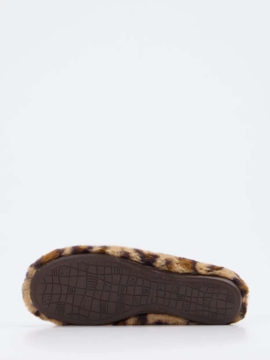 Flauschiges Kunstfell und Leoprint vereinen sich bei diesem Hausschuh zu einem stilvollen Loungewear-Highlight. Die profilierte Gummisohle sorgt für komfortablen Halt auf glatten Böden.