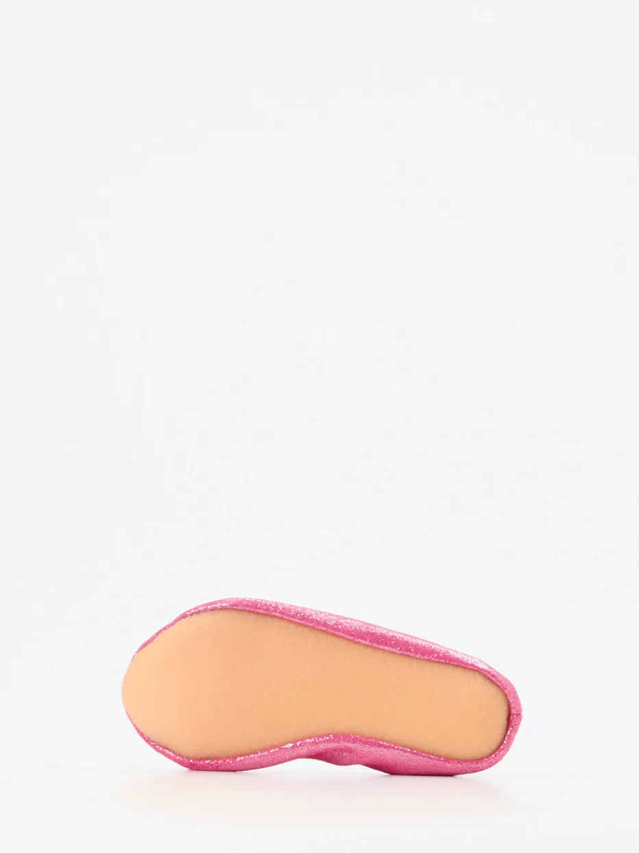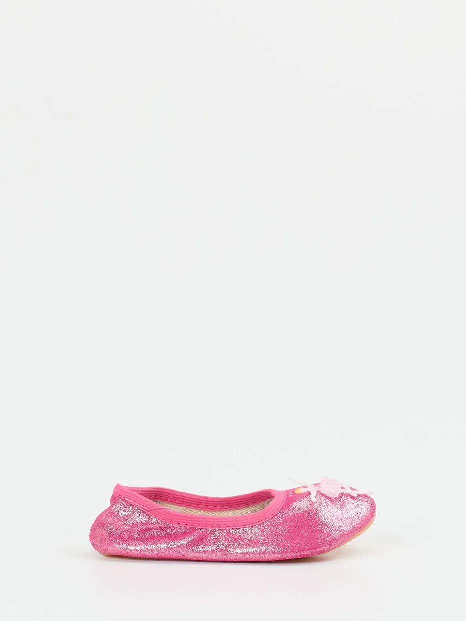 Diese Ballerina-Hausschuhe von Beck begeistern mit glitzernder Oberfläche und liebevoller Applikation – perfekt für kleine Tänzerinnen mit großem Bewegungsdrang.