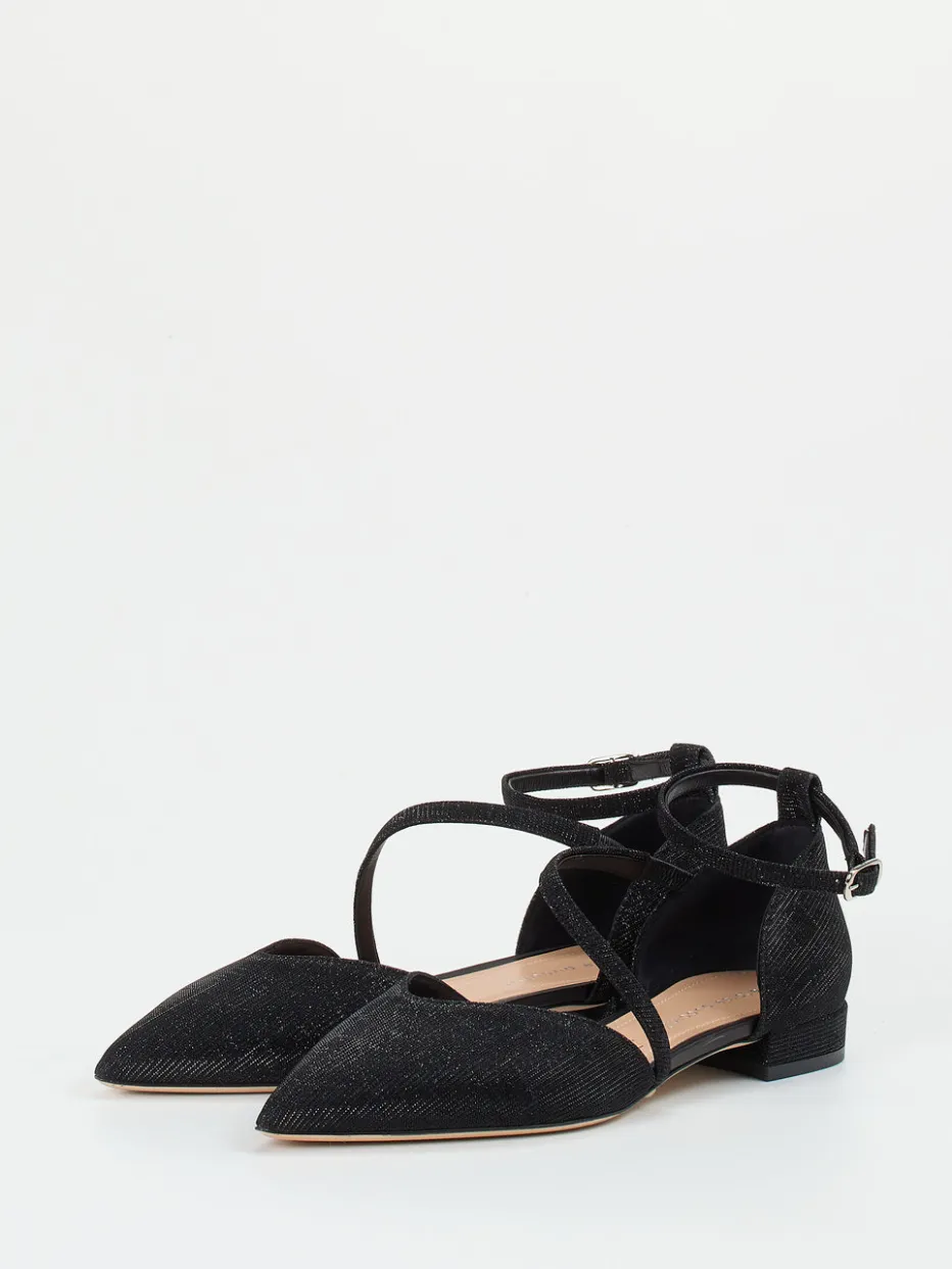 Schimmerndes Metallic-Textil, eine spitz zulaufende Silhouette und filigrane Riemenführung verleihen diesen Ballerinas einen festlich-eleganten Charakter.