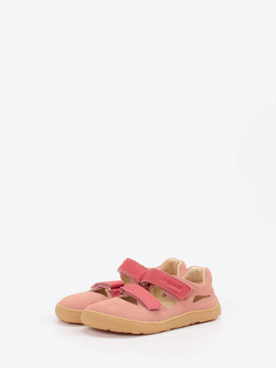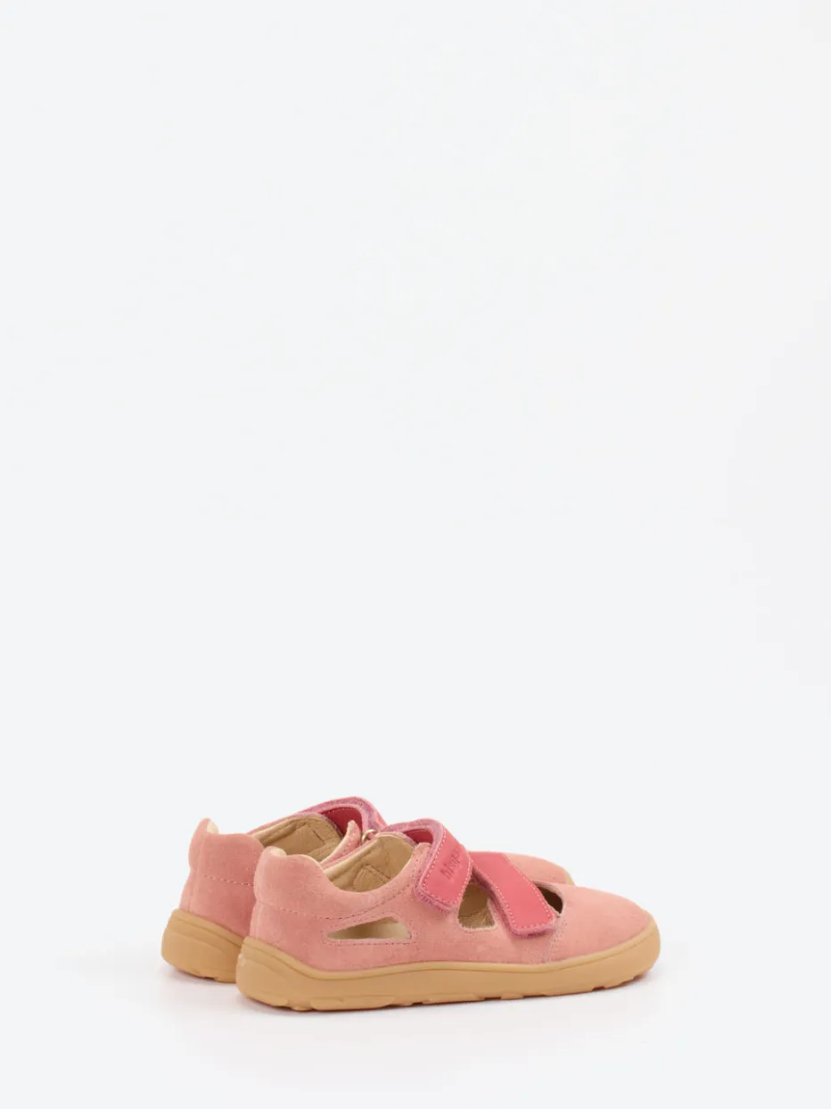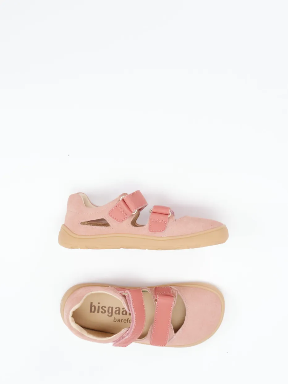 Leichtigkeit für sommeraktive Kinderfüße.Bisgaard präsentiert eine stilvolle Barfußsandale für Kinder, gefertigt aus samtig weichem Veloursleder. Ideal für warme Tage im Freien bietet diese altrosafarbene Sandalette mit korallfarbenen Klettverschlüssen und geschlossener Ferse sicheren Halt und Bewegungsfreiheit. Die geschwungene Form mit Cut-Outs unterstützt die natürliche Fußentwicklung, während die flexible Gummisohle ein Barfußgefühl vermittelt. Ton-in-Ton-Nähte und Logoprägung unterstreichen das skandinavisch inspirierte Design im minimalistischen Stil. Perfekt für Freizeitlooks mit leichter Sommerkleidung kombinierbar. Ein ausbalanciertes Kinderschuhmodell mit Fokus auf Komfort und Bewegungsfreiheit – typisch Bisgaard.