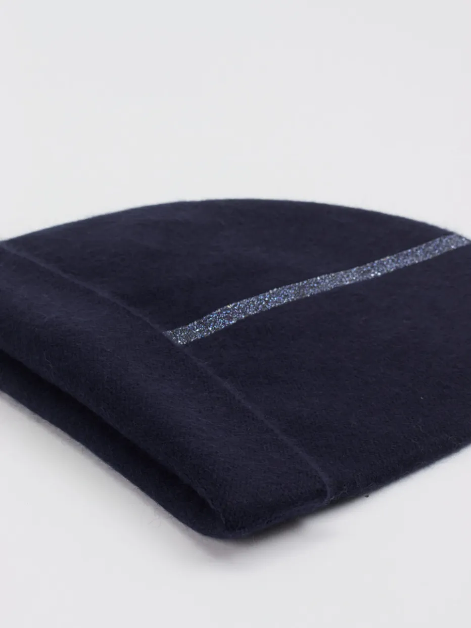 Diese dunkelblaue Kaschmir-Beanie von HURRAY verbindet luxuriösen Komfort mit zurückhaltendem Glanz – perfekt für stilbewusste Wintertage.