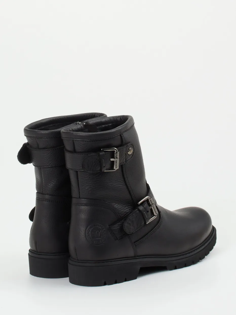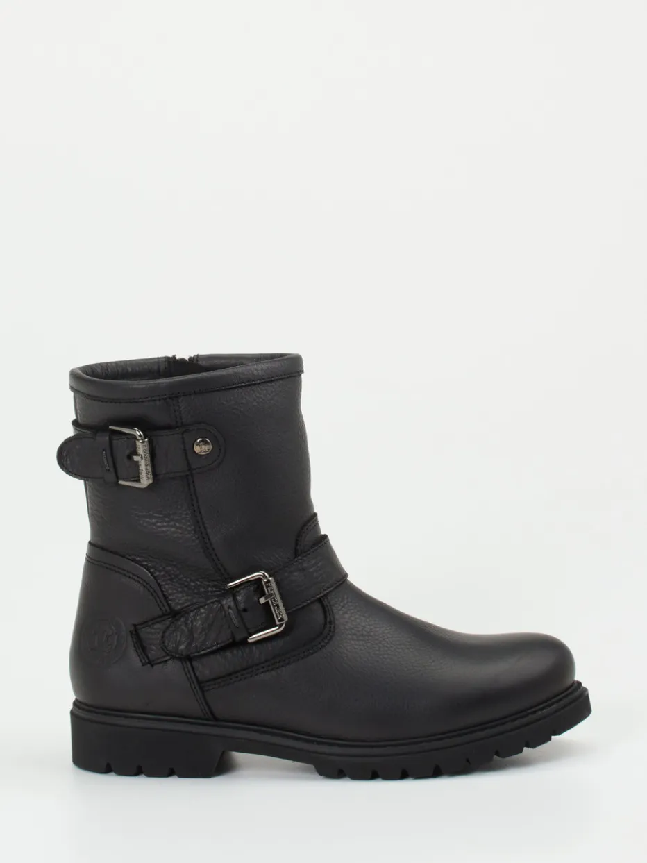 Die robusten Stiefeletten von Panama Jack vereinen genarbtes Kalbleder mit funktionalem Design. Stil und Komfort harmonieren in dieser biker-inspirierten Silhouette auf besonders authentische Weise.