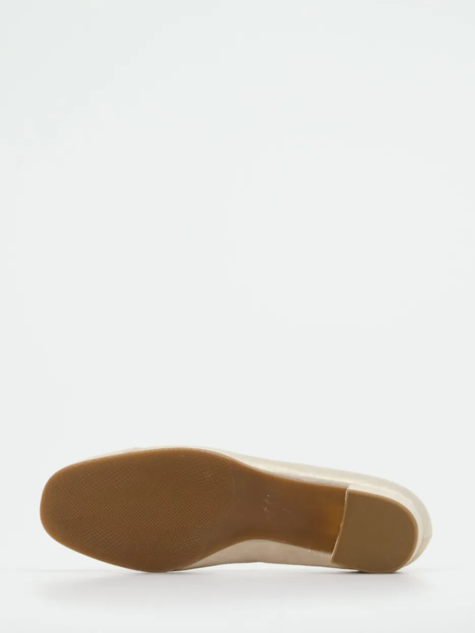 Design trifft Funktion in Beige.Die Marke Hassia präsentiert mit Cordoba einen eleganten Damen-Pump der Kategorie Blockabsatz-Pumps. Ideal für Termine im Büro oder feierliche Anlässe: Der Pumps aus wertigem Veloursleder vereint eine samtige Oberfläche mit einem tonigen Metallicleder-Einsatz an der Seite. In sanftem Beige gehalten und mit runder Form und V-Ausschnitt gestaltet, wirkt er gleichzeitig klassisch und modern. Der komfortable Blockabsatz in Kombination mit einer Gummisohle gibt sicheren Halt. Minimalistische Linien und die dezente Farbgebung unterstreichen den Quiet-Luxury-Trend. Hochwertiger Tragekomfort mit Stil – typisch Hassia.