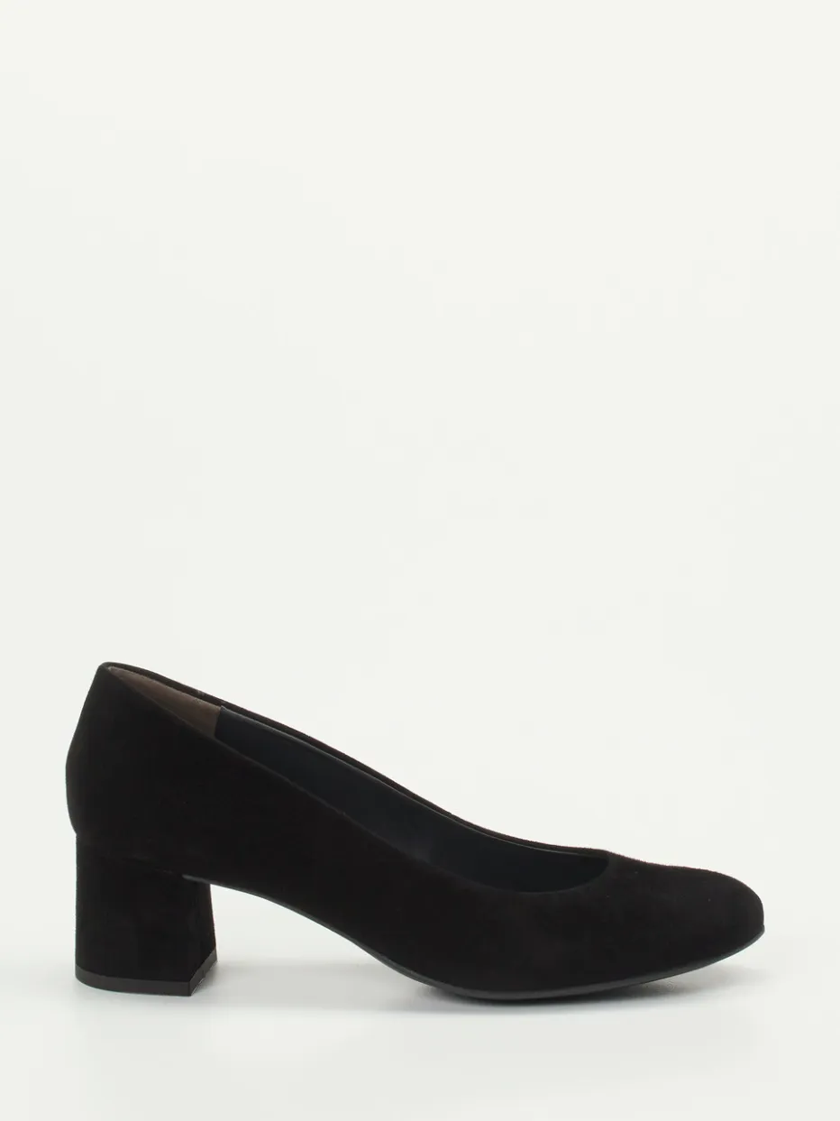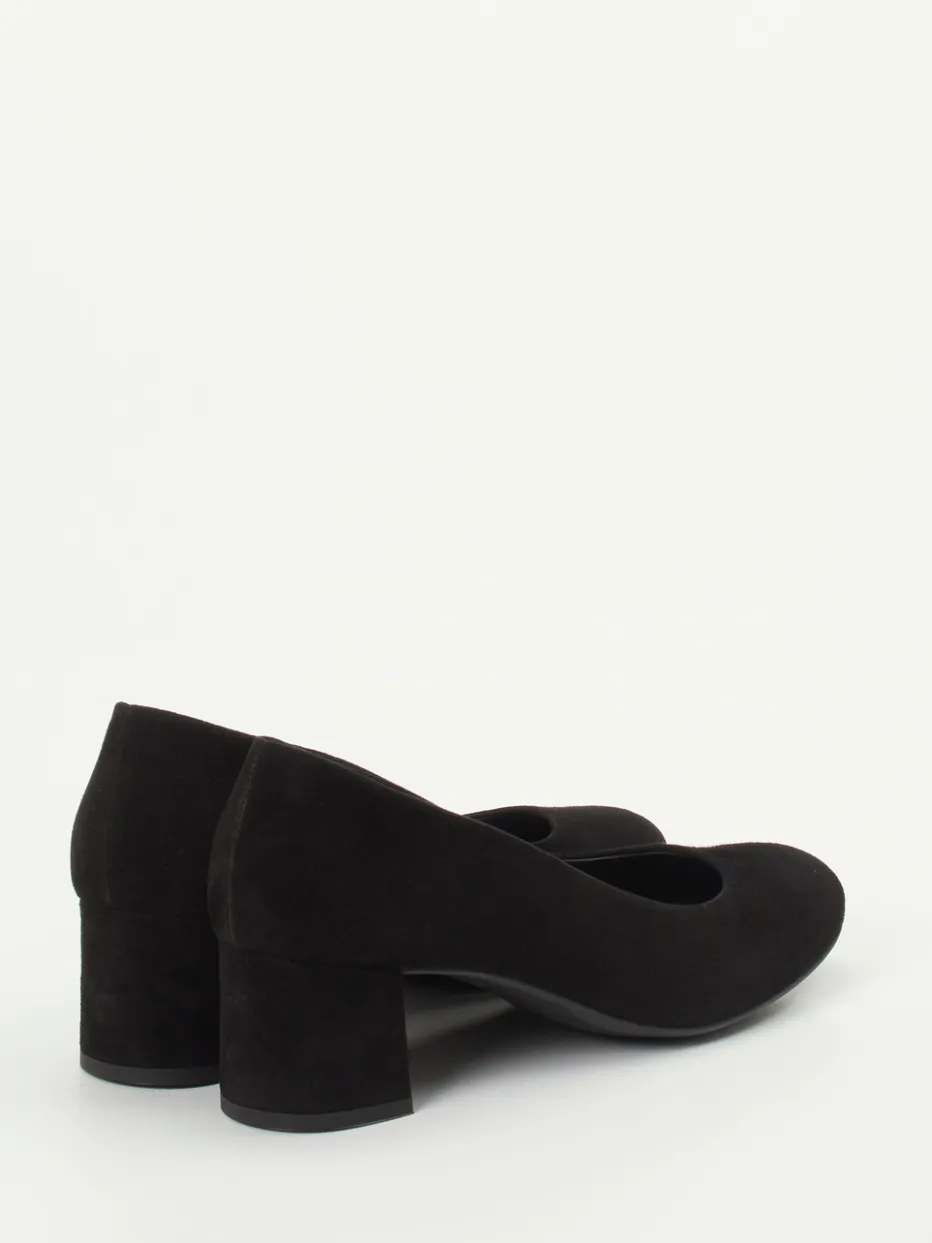 Für Tage im Büro oder gepflegte Feierabend-Dates: Das softe Veloursleder in Schwarz mit leicht strukturierter, matter Oberfläche sitzt auf einem mittelhohen bezogenen Blockabsatz und bietet dank gummierter Sohle guten Tragekomfort. Die abgerundete Form, Schlupfeinstieg und dezente Ton-in-Ton-Details unterstreichen den zurückhaltenden Look. Ideal zu Marlenehosen oder Midikleidern mit Blazer.