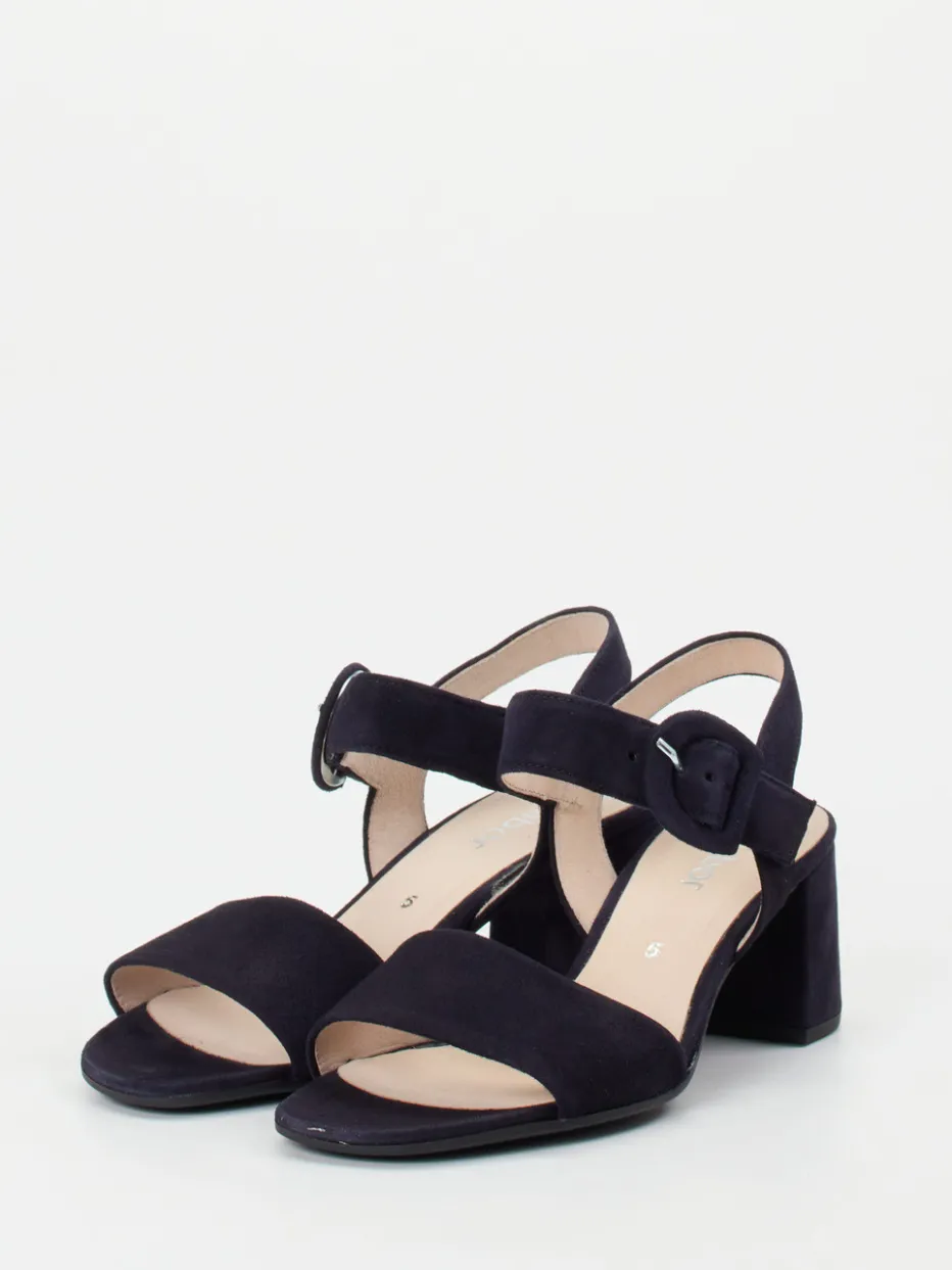 Eleganz in every Step.Gabor präsentiert mit dieser Damen-Sandale ein Klassiker-Modell mit raffiniertem Minimalismus. Ideal für warme Tage im Büro oder festliche Gelegenheiten: Das marineblaue Veloursleder zeigt sich samtig-matt und umhüllt auch den komfortabel hohen, blockigen Absatz. Die offene Silhouette mit verstellbarem Riemen und einer dezent tonalen Metallschnalle kombiniert modernen Chic mit funktionalem Komfort. Das ledergefütterte Fußbett ist leicht gepolstert, die Gummisohle rutschhemmend strukturiert. Inspiriert vom Trend „Quiet Luxury“ passt der Look ideal zu Soft-Neutrals und monochromen Sommer-Outfits. Gabor steht hier für handwerkliche Qualität und stilsichere Alltagstauglichkeit.