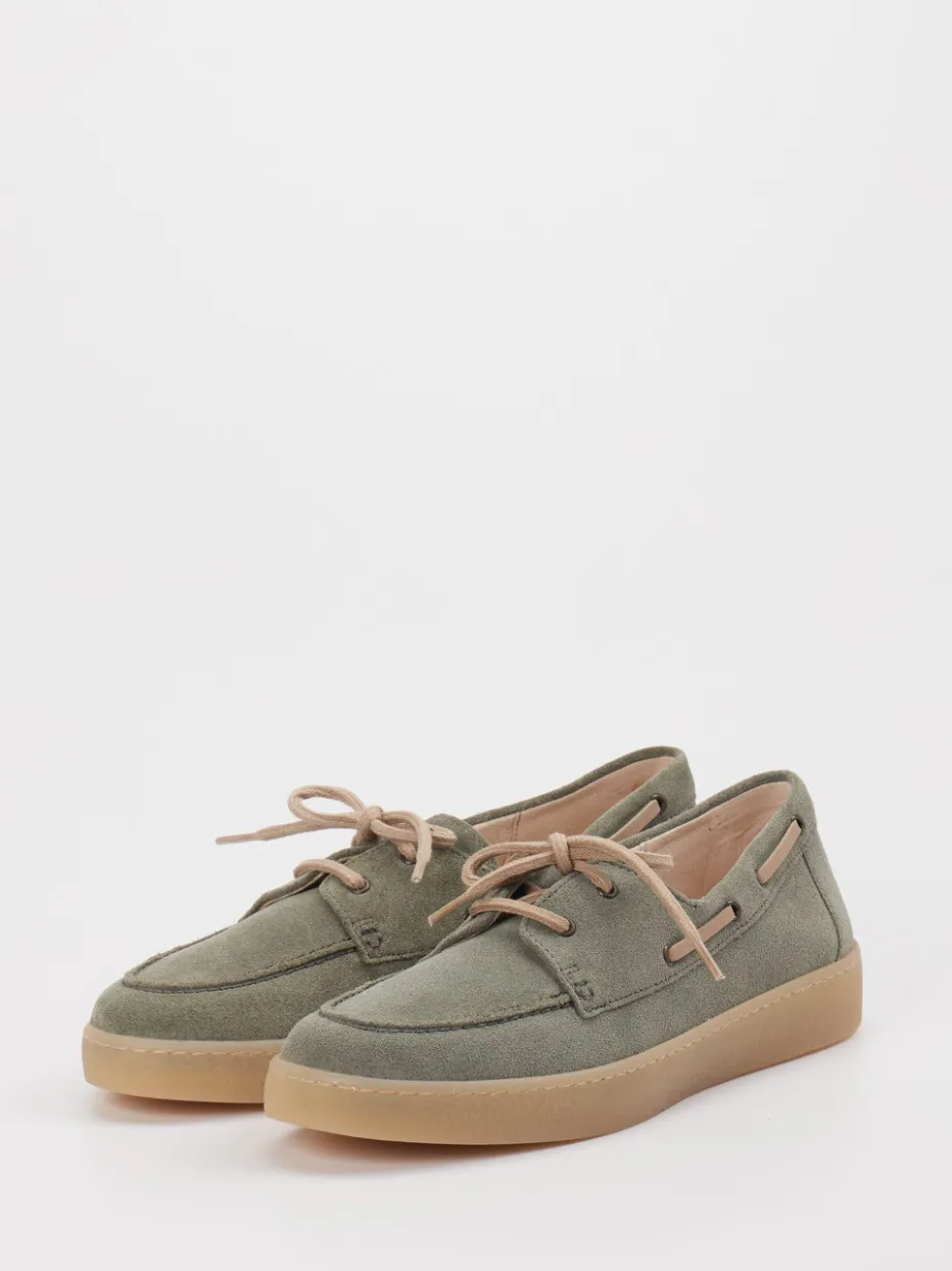 Maritimes Flair trifft auf Komfort. Gabor interpretiert den klassischen Damen-Bootsschuh neu und setzt dabei auf hochwertiges Veloursleder. Ideal für entspannte Tage am Wasser oder in der Stadt: Das olivgrüne Veloursleder mit matter Oberfläche harmoniert mit beigen Akzenten an Schnürung und seitlichen Durchzügen. Die flache, klassische Silhouette wird durch eine rutschfeste Gummisohle ergänzt. Das hellbeige Lederfutter sorgt für ein angenehmes Fußklima. Inspiriert vom Preppy-Stil und voll im Trend „Natural Tones SS24“, passt er perfekt zu leichten Sommerhosen oder einer Canvas-Tasche in Naturtönen. Ein Modell, das Komfort und stilvolle Lässigkeit in jeder Saison vereint.