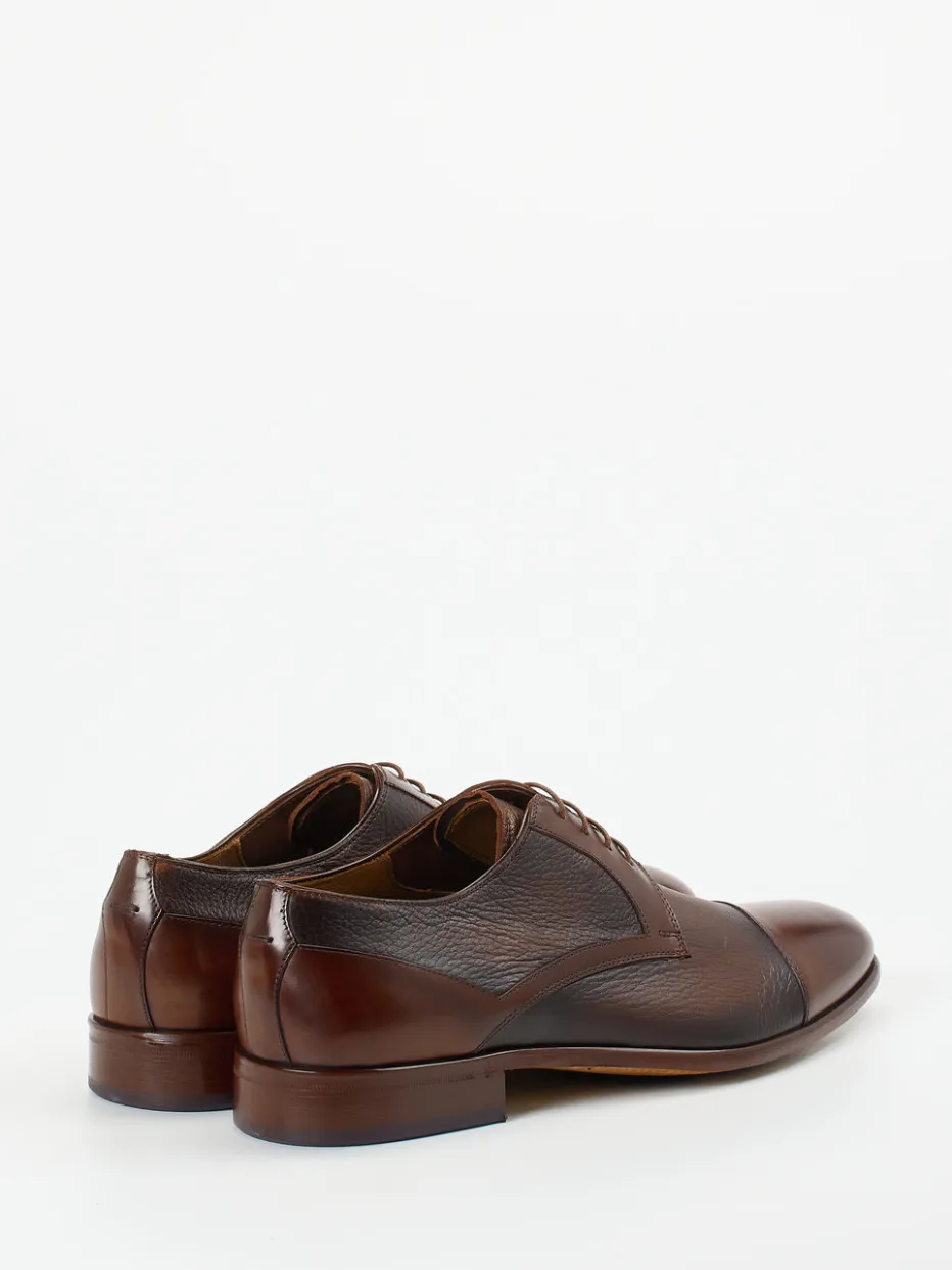 Fein genarbtes Hirschleder und glänzende Glattlederpartien verleihen diesem Captoe-Derby einen souveränen Auftritt mit dezenter Raffinesse.
