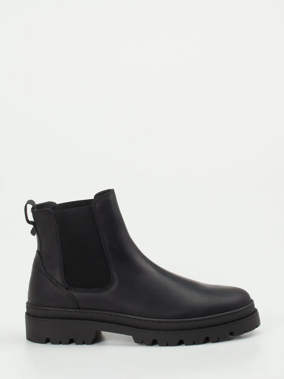Minimalismus trifft auf Funktion.Die Herren-Stiefeletten von Ralph Harrison Country vereinen sportliches Design mit klassischem Chelsea-Stil. Für wechselhafte Herbsttage geeignet, bieten diese schwarzen Boots mit ihrem wasserabweisenden Fettleder und der kräftigen Gummisohle maximalen Schutz und Grip. Die knöchelhohe Form harmoniert mit den elastischen Einsätzen und der hinteren Zuglasche für ein unkompliziertes Anziehen. Die matte Oberfläche sowie Ton-in-Ton-Nähte unterstreichen den minimalistischen Look. Inspiriert vom Heavy Sole Trend, passen sie ideal zu urbanen Outfits zwischen Streetwear und Business Casual. Ein funktionaler City-Begleiter mit klarer Designhandschrift von Ralph Harrison Country.