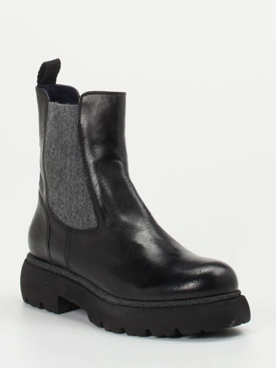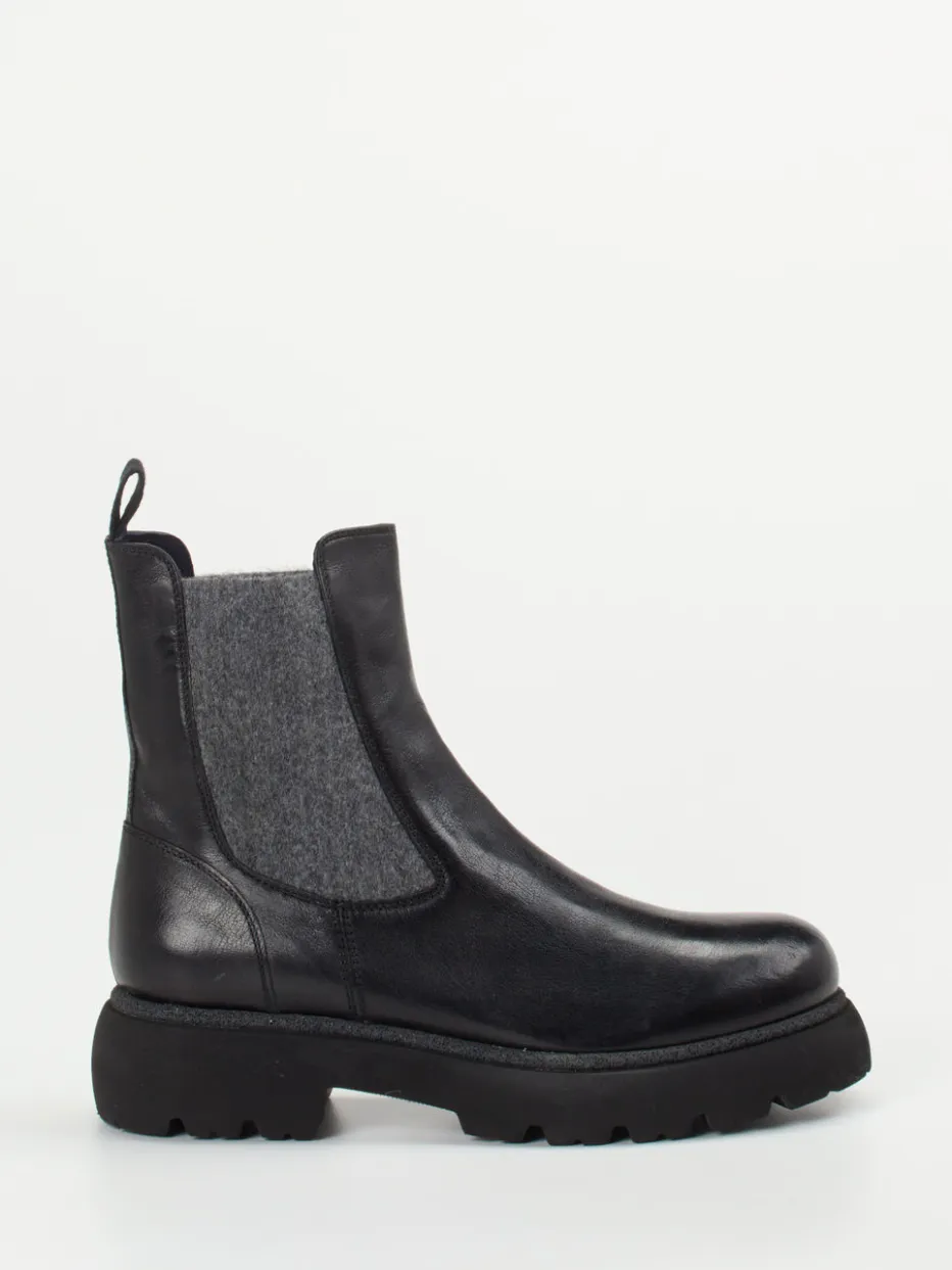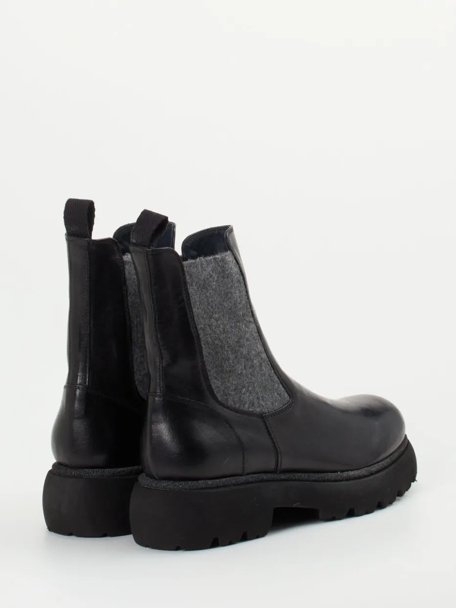 Diese Chelsea Boots vereinen hochwertiges Känguruleder mit kontrastierendem Filz und wirken durch die markante Leichtzellsohle modern und urban.