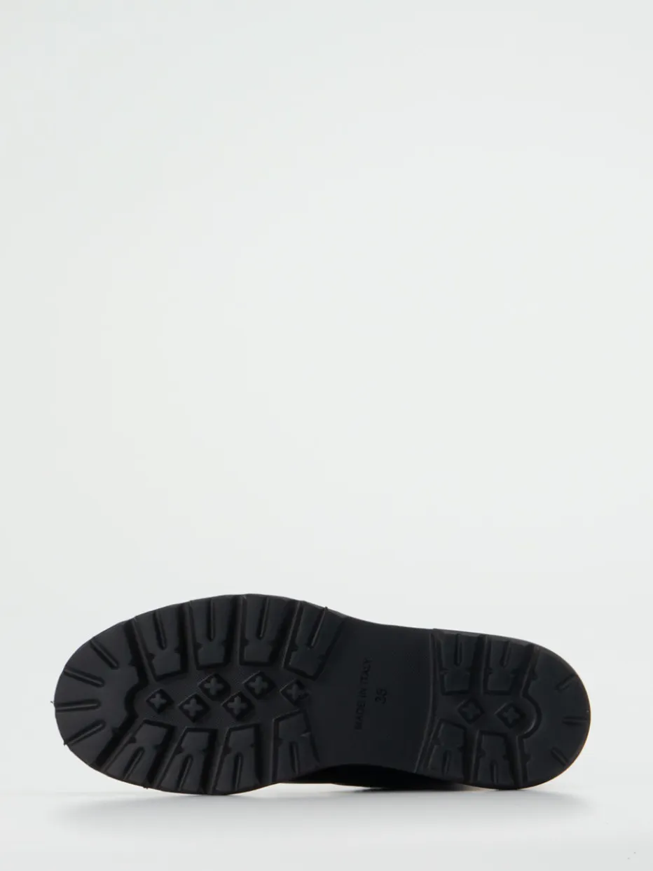 Lässige Eleganz für kühle Tage.Chelsea Boots von Konstantin Starke zeigen sich urban und stilvoll. Für den Alltag oder das Office bieten diese schwarzen Stiefeletten aus edlem Känguruleder mit matter Oberfläche einen smarten Look. Die kontrastierenden grauen Stretch-Einsätze aus Filz sorgen für einen angenehmen Einstieg und setzen dezente visuelle Akzente. Ihre klassische, knöchelhohe Form wird durch die voluminöse, 4 cm hohe Profilsohle aus Leichtzell betont; eine Zughilfe hinten komplettiert das Design. Der Ton-in-Ton-Look trifft auf den Trend Chunky Boots und Quiet Luxury der aktuellen Saison. Kombinierbar mit Wollmantel und Strick. Ein hochwertiges Statement-Piece mit markanter Silhouette und durchdachten Komfortdetails.