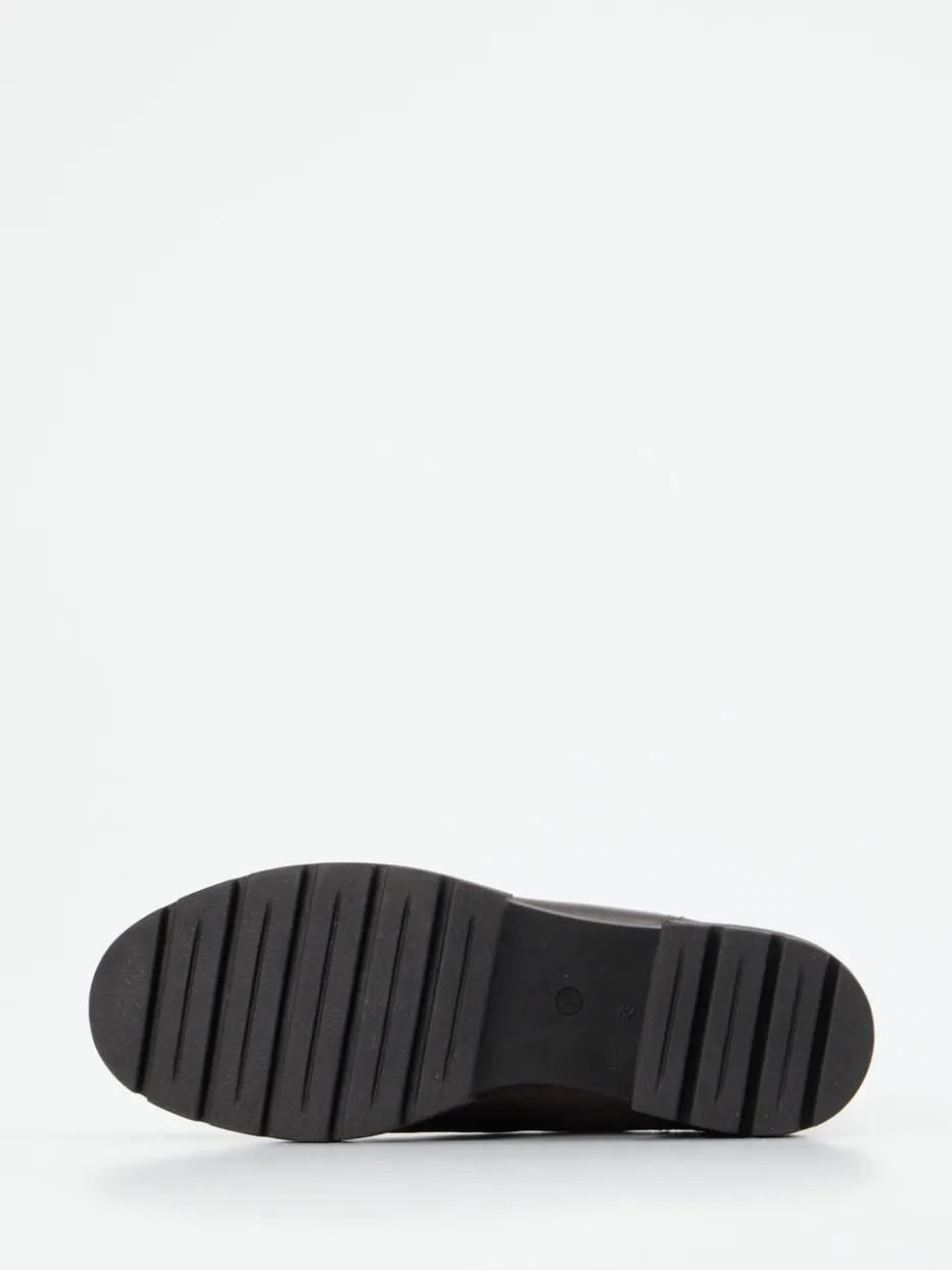 Ob beim Stadtbummel oder im Büroalltag – das Modell überzeugt durch genarbtes Kalbleder in tiefem Dunkelbraun und eine profilierte Gummisohle mit leichter Absatzhöhe von 3 cm. Elastikeinsätze und die praktische Schlupfform sorgen für Komfort und ein minimalistisches Gesamtbild. Die rund zulaufende, knöchelhohe Silhouette passt zu urbanen Casual-Looks ebenso wie zu klassischen Outfits. Trend-Elemente wie die massive Sohle und Ton-in-Ton-Details greifen aktuelle Stilrichtungen wie Quiet Luxury auf.