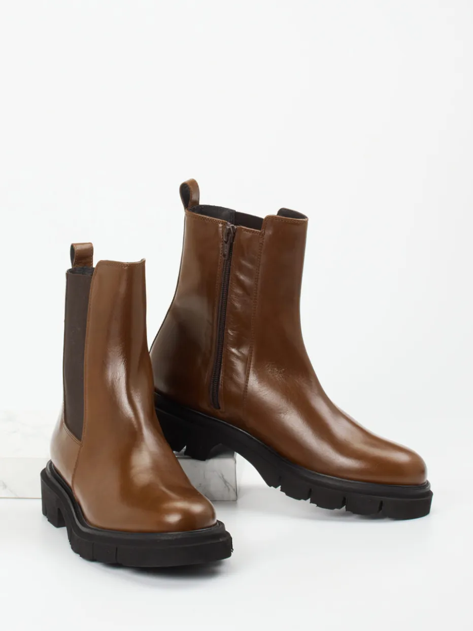 Stilvolle Stärke für jeden Tag.Die Marke Mannori vereint bei diesen Chelsea Boots klassische Eleganz mit modernem Komfort. Das braune Kalbleder zeigt ein edles Glanzfinish und umschließt die klassische, knöchelhohe Form. Seitliche Elastikeinsätze und ein innenliegender Reißverschluss erleichtern den Einstieg. Die profilierte Gummisohle mit 3 cm Absatzhöhe sorgt für sicheren Stand und greift Trendthemen wie Utility Chic und Quiet Luxury auf. Ton-in-Ton-Nähte, Zuglaschen sowie das puristische Design heben den minimalistischen Charakter hervor. Ideal kombinierbar zu Naturtönen und Oversized-Mänteln. Mannori steht für feinste Verarbeitung und maximalen Tragekomfort – stilgerecht und alltagstauglich.
