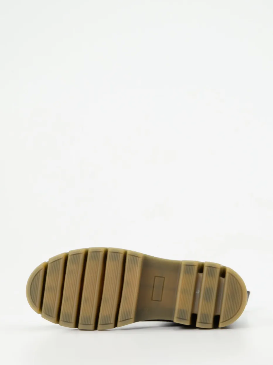Chunky trifft Klassiker.Andrea Puccini präsentiert modische Chelsea Boots für Damen – designt für stilbewusste Auftritte zwischen Streetstyle und Understatement. Schwarzes, glänzendes Kalbleder und elastische Ton-in-Ton-Einsätze prägen die klassische Silhouette, ergänzt durch markante Zugschlaufen. Die honigfarbene, tief profilierte Chunky-Sohle aus Gummi setzt visuell starke Akzente und bietet zugleich sicheren Tritt bei urbane Aktivitäten. Der 5 cm hohe Absatz und das leicht gepolsterte Innenfutter garantieren Komfort an langen Tagen. Ideal zu Oversized-Mantel und Crossbody-Bag kombinierbar. Ein charakterstarker City-Boot mit trendfestem Design und hochwertiger Verarbeitung.