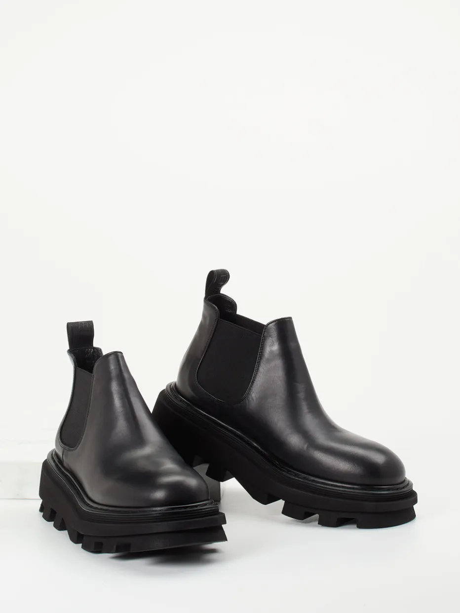 Diese Chelsea Boots von Elena Iachi vereinen hochwertiges Kalbleder mit markanter Chunky-Sohle – ein Statement für den modernen Streetstyle mit minimalistischem Anspruch.