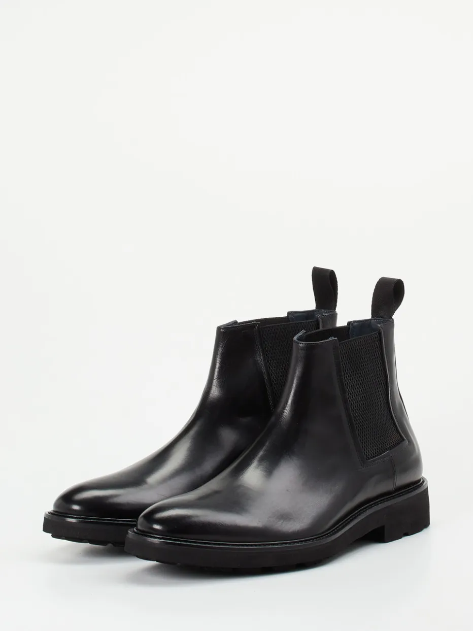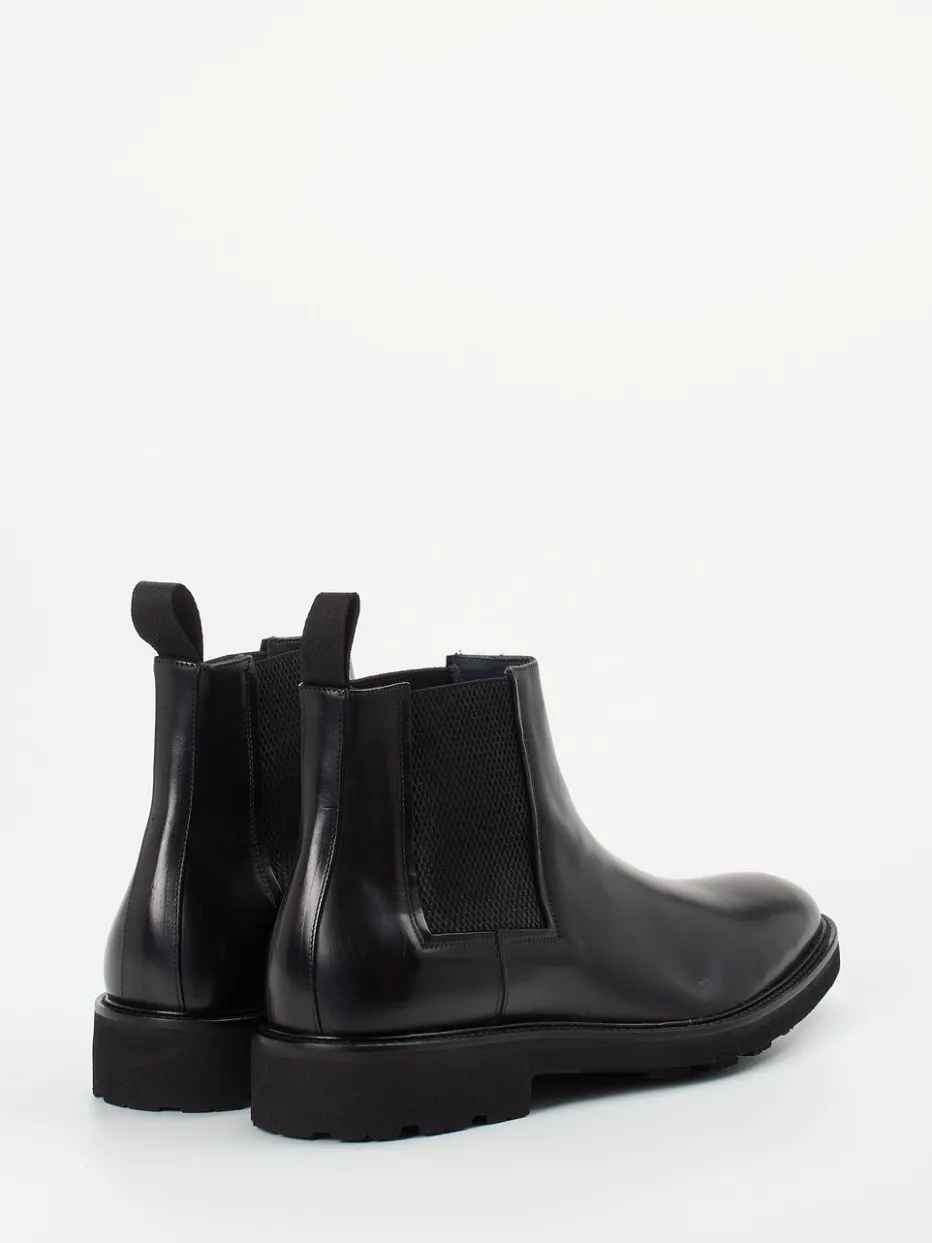 Die Ralph Harrison Edition interpretiert Herren-Chelsea-Boots mit einer klaren Formsprache neu. Die klassische Schlupfform aus hochwertigem, glänzendem Kalbleder in tiefem Schwarz passt ideal zu urbanen Looks mit Understatement.