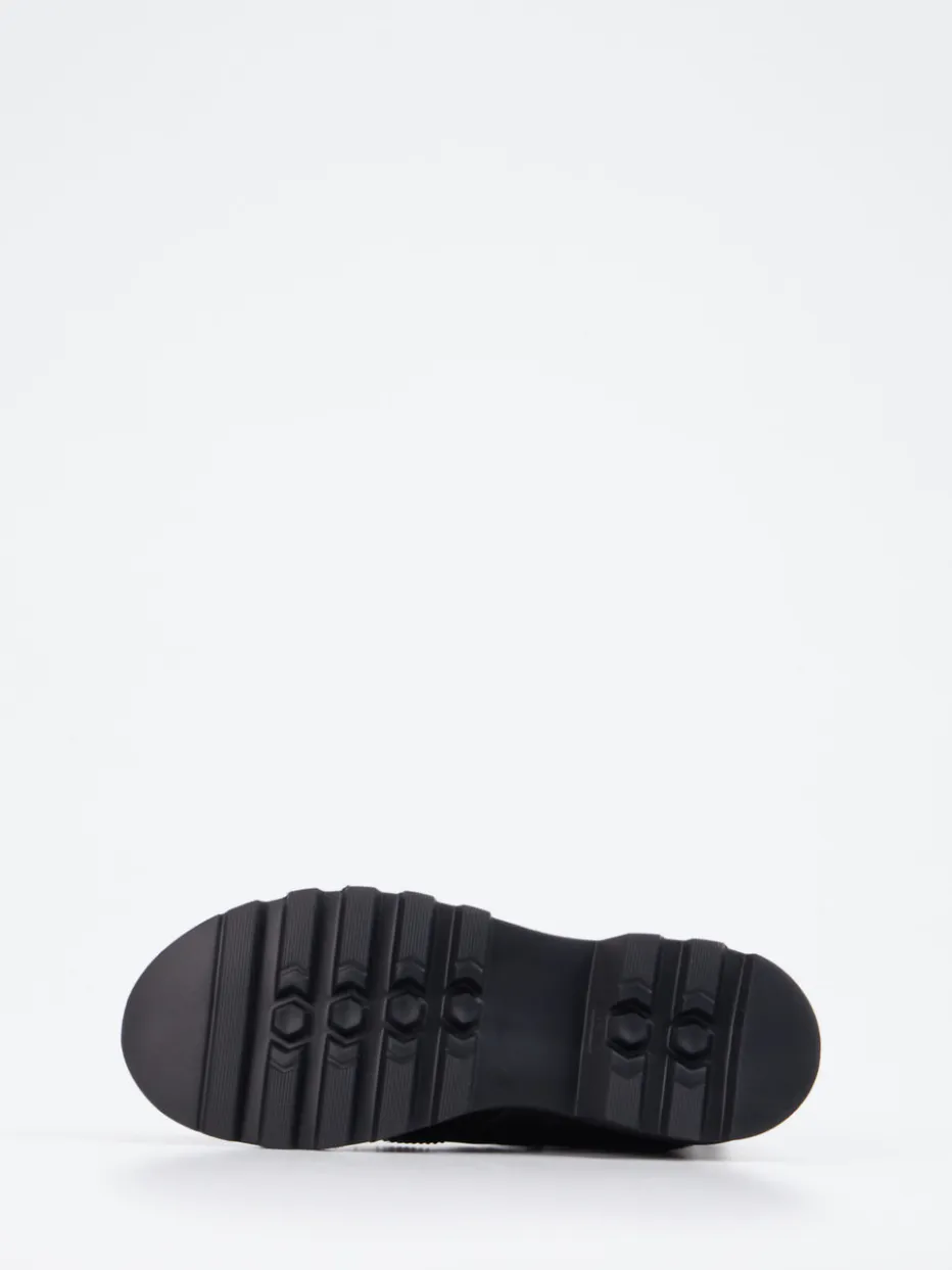 Herbststiefel mit Stilpotenzial.Die Marke Werner präsentiert mit diesen Chelsea Boots ein Modell für Damen, das gekonnt Tradition und urbanen Zeitgeist verbindet. Ideal für moderne Alltagslooks bei wechselhaftem Wetter: Gefertigt aus schwarzem Kalbleder mit genarbter Oberfläche, zeigen diese knöchelhohen Stiefeletten subtile Brogue-Verzierungen und eine markant profilierte Sohle – beide Ton-in-Ton gehalten. Seitliche Elastikeinsätze sorgen für bequemen Einstieg, eine Zuglasche hinten ergänzt das funktionale Design. Durch ihre kompakte Form und klare Linienführung bieten sie vielfältige Kombinationen von Streetwear bis Bürooutfit. Der aktuelle Chunky-Sole-Trend trifft hier auf Heritage-Elemente. Typisch Werner: Verlässliche Handwerkskunst in urbaner Formsprache.