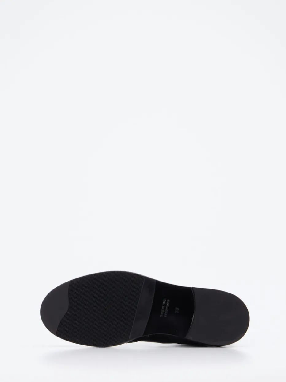 Heritage trifft auf moderne Klarheit.Konstantin Starke präsentiert elegante Chelsea Boots für Damen mit einem edlen Finish. Ideal für Tage im Büro oder den urbanen Alltag bieten die schwarzen Stiefeletten mit hochwertigem Lackleder in glänzender Optik einen stilvollen Auftritt. Brogue-Lochmuster, knöchelhoher Schnitt und klassische Elastikeinsätze prägen die schmal zulaufende Silhouette. Die 1/2 Gummi-/Ledersohle mit rutschfester Struktur sorgt für Komfort, während Ziegenlederfutter ein angenehmes Tragegefühl bietet. Als Teil der aktuellen „Quiet Luxury“-Strömung stehen sie für dezente Eleganz – harmonisch kombinierbar mit Wollmantel oder Tailored Look. Ein Premium-Boot mit feinem Finish – typisch Konstantin Starke.