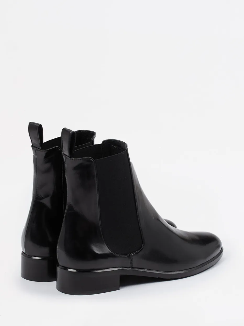 Elegant geerdet – Designklassiker mit modernem Anspruch.Konstantin Starke präsentiert klassische Chelsea Boots für Damen mit klarer Linie und edlem Anspruch. Für gehobene Alltagsmomente oder elegante Büro-Outfits: Das schwarze Lammleder überzeugt durch eine fein glänzende Oberfläche und präzise Verarbeitung. Breite, tonige Elastikeinsätze und Zuglaschen am Schaft sichern den bequemen Einstieg. Die knöchelhohe, zeitlose Silhouette trifft auf einen 3 cm Blockabsatz mit Gummisohle, was für eine angenehme Laufhöhe sorgt. Der Look verschmilzt gekonnt minimalistisches Design mit Anklängen britischer Heritage – stilistisch präzise im Trendsegment „Quiet Luxury“. Besonders gut kombinierbar zu klassischen Mänteln oder monochromen Office-Outfits. Ein femininer Allrounder mit Komfort und stilistischer Klarheit.