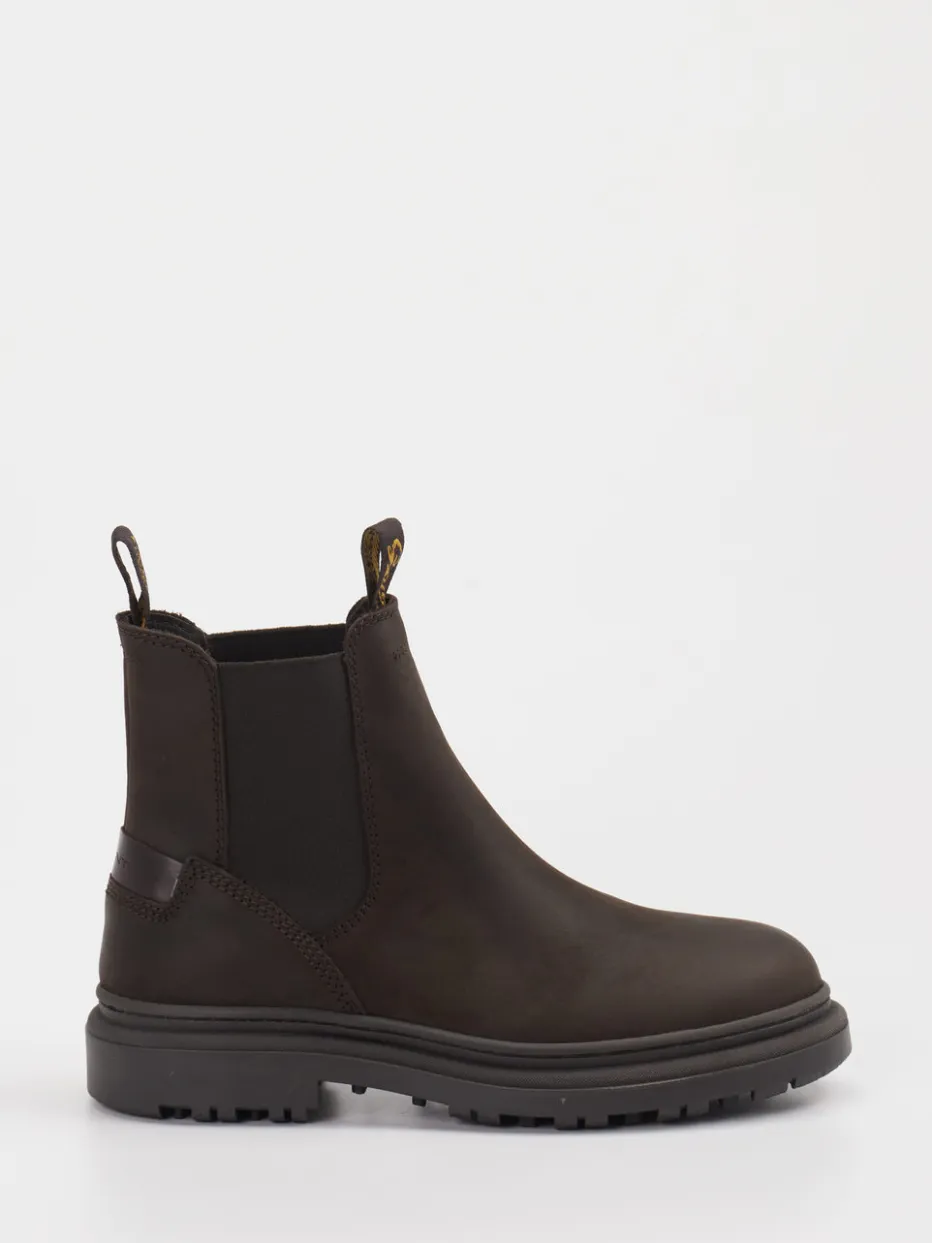 Stilsicher durch die kalte Jahreszeit. Gant interpretiert die klassische Stiefelette als hochwertig gearbeiteten Chelsea Boot. Für unbeständige Herbsttage oder entspannte Stadtbesuche bietet das Modell Schutz und Komfort. Das dunkelbraune Leder zeigt eine matte Oberfläche und verbindet mit dem elastischen Einsatz sowie den charakteristischen Zuglaschen in Kontrastfarbe funktionale Details mit urbaner Ästhetik. Die kräftige Gummisohle mit tiefem Profil sorgt für Trittsicherheit und rundet die klassische, knöchelhohe Silhouette ab. Der Utility-Style wird durch minimalistische Workwear-Elemente betont – ideal für casual-orientierte Outfits. Kombiniert mit Thermosocken und Outdoorjacke ergibt sich ein stimmiges Gesamtbild. Robustheit, Stil und Komfort im markentypisch klaren Gant-Design.