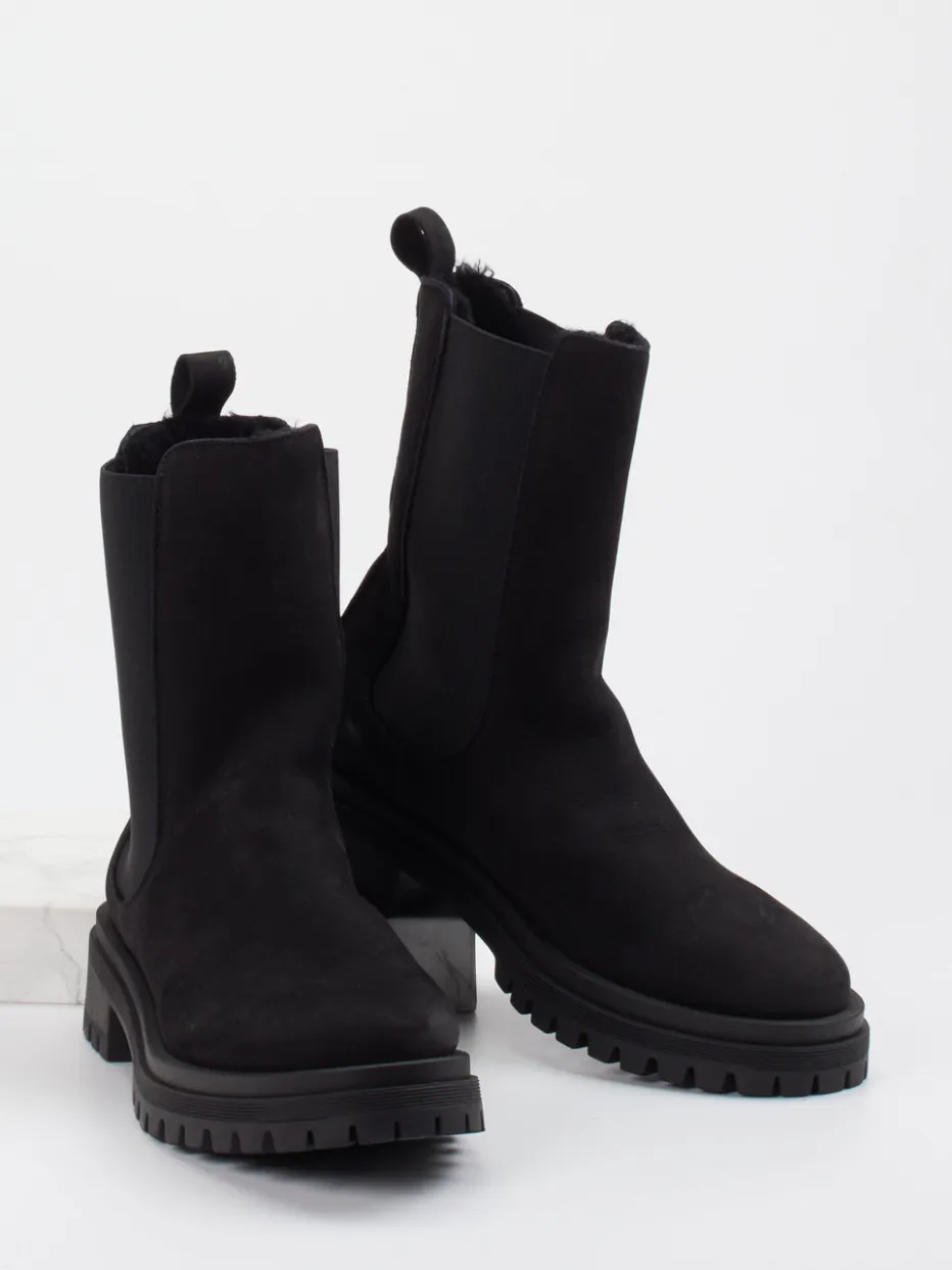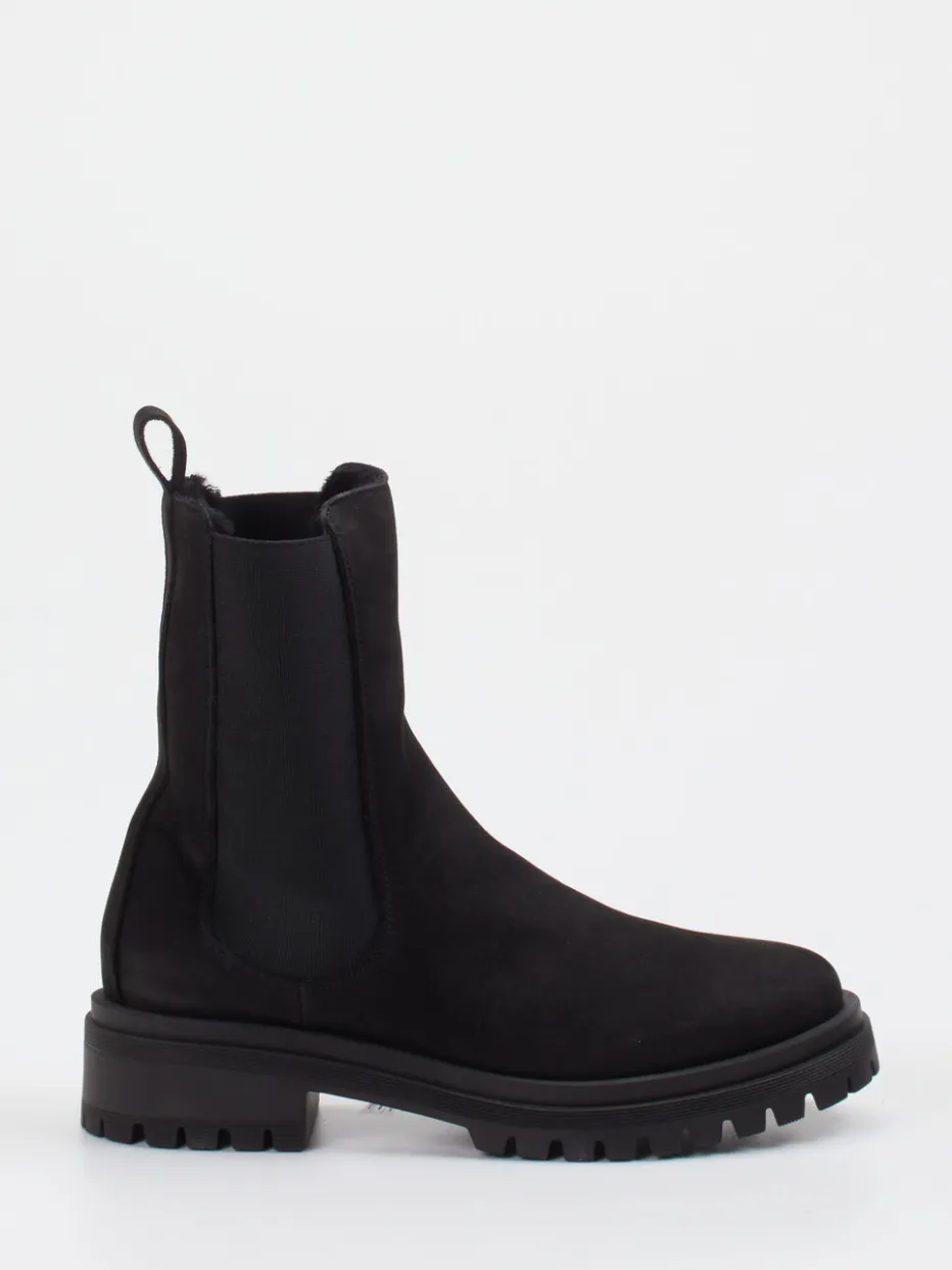 Minimalismus trifft Funktion.Andrea Puccini interpretiert die Damen-Stiefelette im Chelsea-Stil zeitgemäß neu. Die schwarze Silhouette mit tonalem Design und hohem Schaft erfüllt urbane Ansprüche im Winter. Das Nubukleder mit samtig angerauter Oberfläche wirkt dank matter Struktur besonders hochwertig und passt zum puristischen Look. Robuste Gummisohle mit tiefem Profil und Lammfellfutter bieten Trittsicherheit und Wärme. Elastikeinsatz und Zuglasche erleichtern das Hineinschlüpfen. Als Trendpiece positionieren sie sich bei „Chunky Chelsea“ und „Quiet Luxury“. Kombiniert mit Oversize-Mantel entstehen stilvolle Everyday-Kombinationen. Authentische Verarbeitung und reduziertes Design schaffen langlebigen Komfort mit modernem Anspruch.