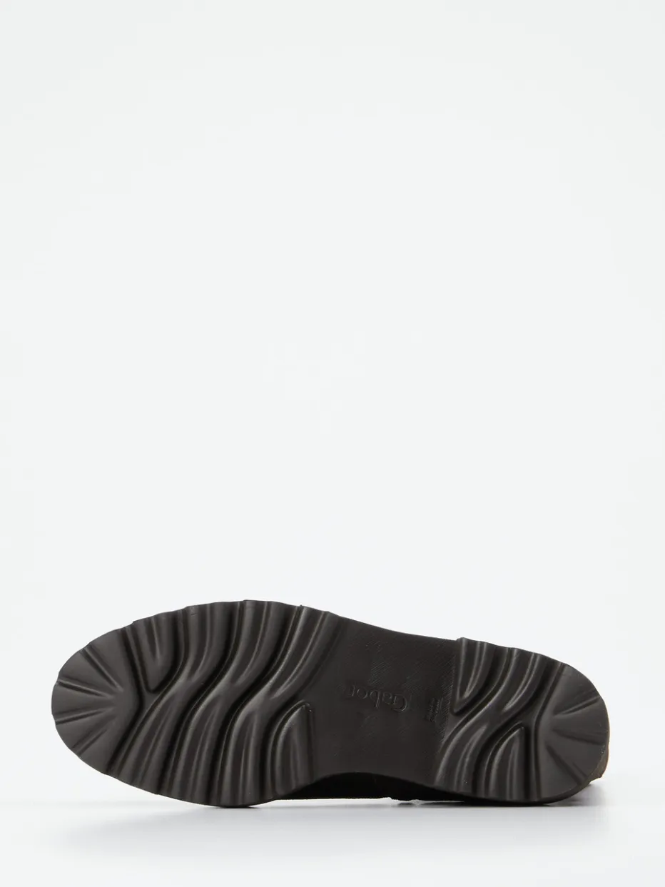 Stilsicher durch unbeständiges Wetter.Gabor präsentiert mit dieser Damen-Stiefelette einen modernen Chelsea Boot im minimalistischen Streetwear-Stil. Für regnerische Tage im Alltag oder Büro bietet das schokoladenbraune Veloursleder mit samtiger Haptik und matter Oberfläche zuverlässigen Halt. Seitliche Elastikeinsätze und ein verdeckter Reißverschluss sorgen für bequemes An- und Ausziehen, während die tiefe, mehrlagige Gummisohle Stabilität auf rutschigen Untergründen garantiert. Die knöchelhohe Silhouette passt zu Jeans wie zu Wollröcken und spiegelt den „Quiet Luxury“-Trend wider. Dank Wechselfußbett auch ideal für individuelle Einlagen. Dezentes Design und vielseitiger Komfort in zeitgemäßer Formensprache.