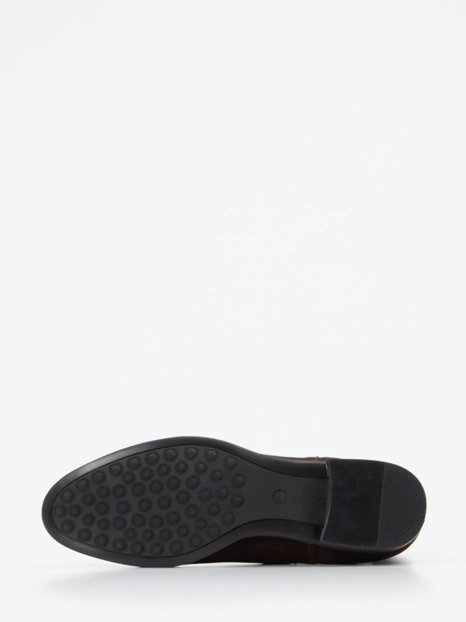 Diese Chelsea Boots aus dunkelbraunem Veloursleder vereinen klassische Linien mit edler Zurückhaltung – ein stilsicherer Begleiter für den Herbst.
