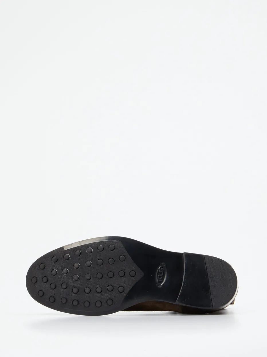 Der klassisch geformte Chelsea Boot von Tod’s überzeugt mit edlem Veloursleder und minimalistischer Silhouette – ein stilvoller Begleiter zwischen Büro und Freizeit.