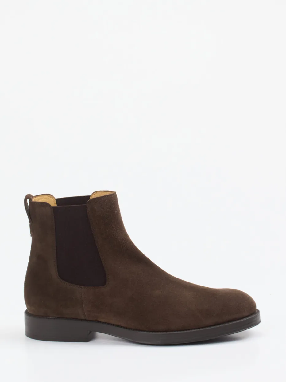 Minimalismus trifft Substanz.Tod’s interpretiert mit diesen Chelsea Boots ein zeitloses Klassiker-Modell für Herren. Für elegante Business-Casual-Looks oder stilvolle City-Outfits bieten diese Stiefeletten Struktur und Komfort zugleich. Gefertigt aus hochwertigem, samtig angeschliffenem Veloursleder in Dunkelbraun, präsentieren sich die Boots mit tonalen Elastikeinsätzen, dezenter Zuglasche im Fersenbereich und schmaler Passform. Das Innenfutter aus Leder und die robuste Gummisohle mit charakteristischem Punktprofil sorgen für angenehmen Tragekomfort im Herbst und Winter. Inspiriert von British Heritage, fügt sich das Modell nahtlos in die Quiet-Luxury-Ästhetik ein. Ein formvollendeter Klassiker mit ikonischer Handschrift – typisch Tod’s.