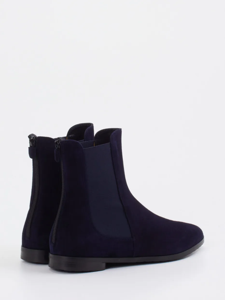 Stilvoll durch Herbst und Winter.Truman’s präsentiert edle Chelsea Boots für Damen. Wenn der Alltag Eleganz verlangt, bieten diese tiefdunkelblauen Stiefeletten aus samtigem Veloursleder einen stilvollen, zurückhaltenden Auftritt. Die schmale, klassische Silhouette wird durch Ton-in-Ton-Elastikeinsätze und einen rückseitigen Reißverschluss modern interpretiert. Eine flexible Gummisohle sowie das weiche Lammnappa-Futter sorgen für Komfort, auch an langen Tagen. Inspiriert vom britischen Heritage-Stil passt das minimalistische Design hervorragend zu trendigen „Quiet Luxury“-Looks. Ideal kombinierbar mit einem Kaschmirmantel oder einer Lederhandtasche. Zeitlose Eleganz in kompromissloser Qualität – Truman’s Stilverständnis auf den Punkt gebracht.