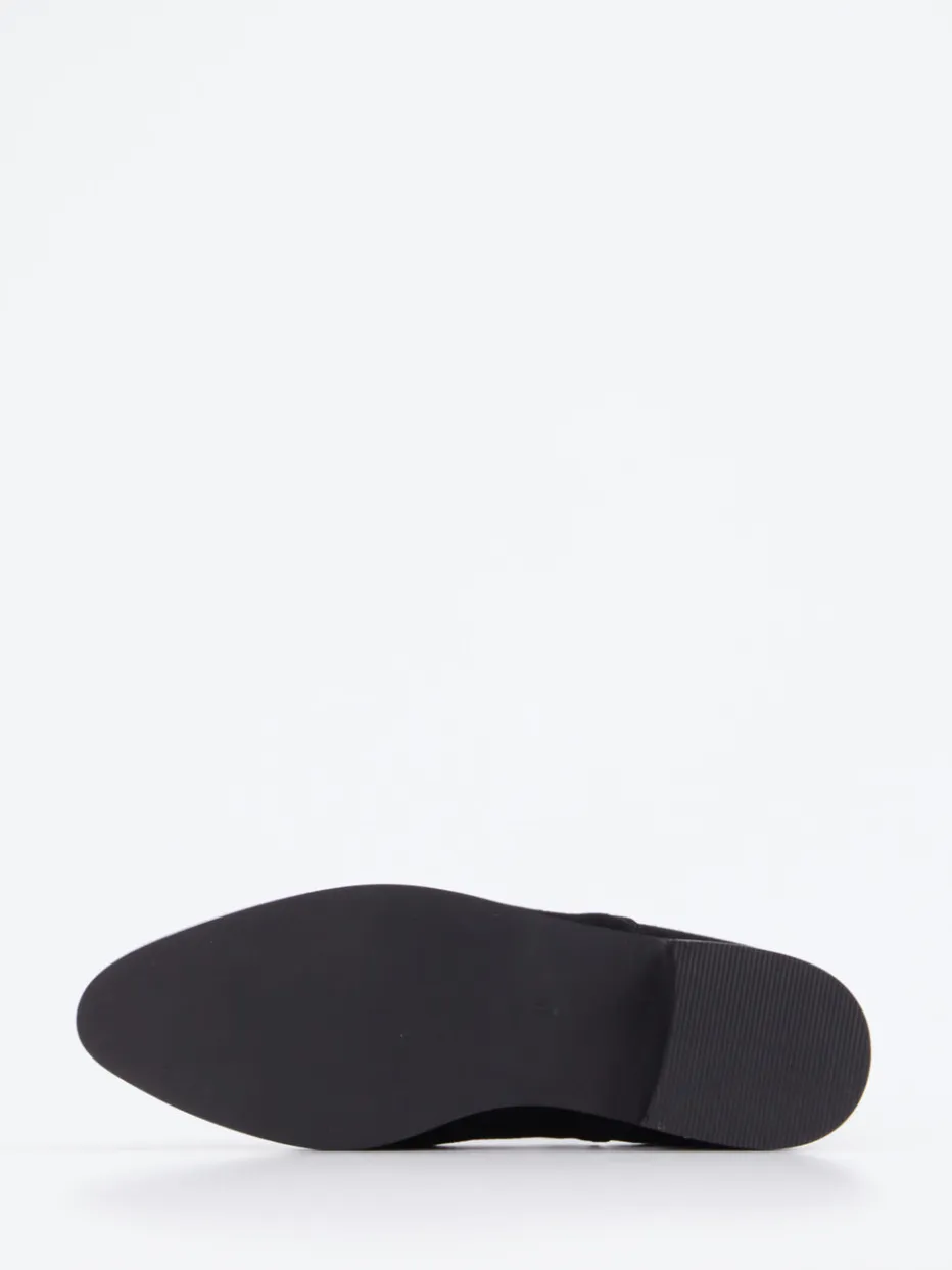 Feine Kontur im minimalistischen Look. Di Lauro präsentiert mit diesen Chelsea Boots ein stilvolles Damenmodell für Alltag und Business. In Schwarz gehalten und aus hochwertigem Veloursleder gefertigt, überzeugt die klassische knöchelhohe Form durch ein mattes Finish und klare Linien. Ton-in-Ton gehaltene Elastikeinsätze sowie praktische Zuglaschen unterstreichen den reduziert-minimalistischen Stil. Die flache Gummisohle mit dezentem 2-cm-Absatz sorgt für angenehmen Tragekomfort und eignet sich besonders für urbane Outfits bei Herbstwetter. Ein eleganter Begleiter zum Wollmantel oder zur Anzughose. Understatement trifft Komfort – Di Lauro verbindet Traditionsdesign mit moderner Tragbarkeit.