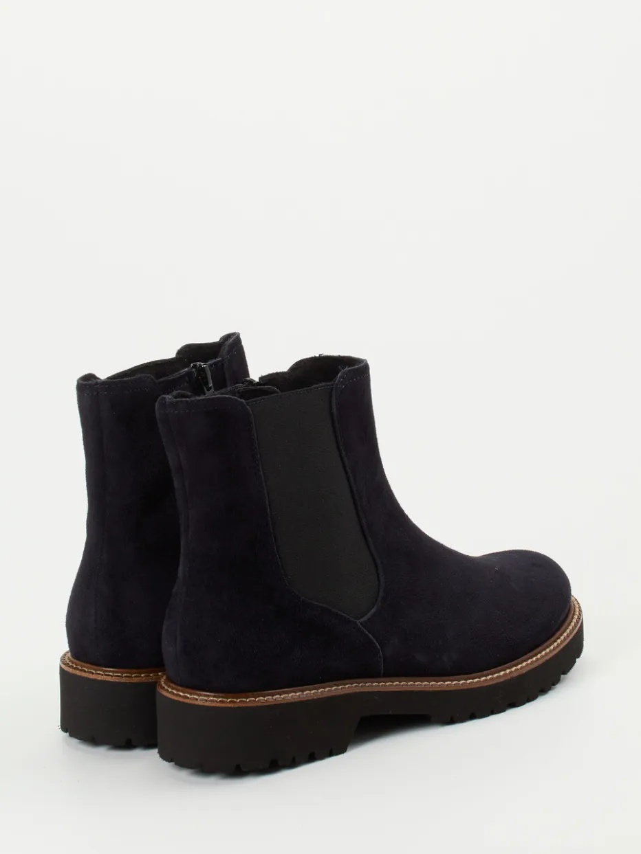 Semler präsentiert klassische Chelsea-Stiefeletten für Damen – hier in edlem Nachtblau.