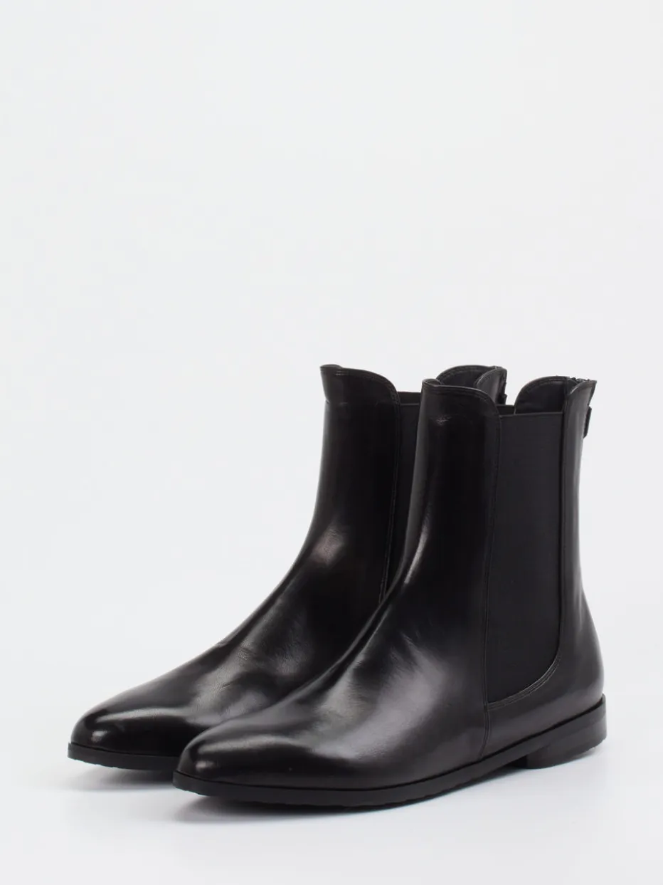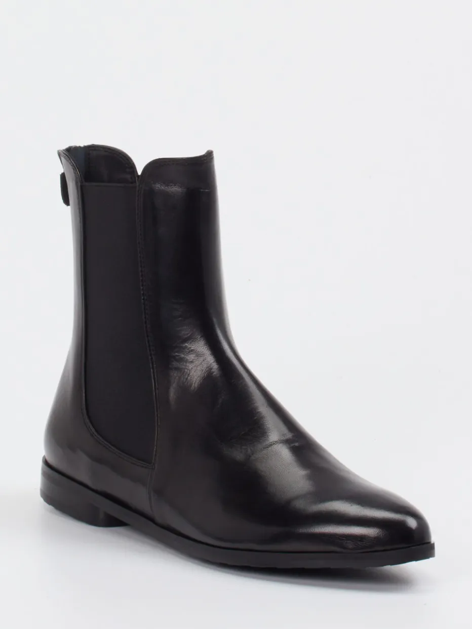 Schwarz, schlicht, stilvoll.Truman’s präsentiert ein Chelsea-Modell für Damen, das moderne Zurückhaltung perfekt inszeniert. Für minimalistische Looks und klare Linien designt, überzeugen diese knöchelhohen Stiefeletten in tiefschwarzem Veloursleder und mit schmaler Silhouette. Elastikeinsätze sorgen für klassischen Chelsea-Charakter, während der rückseitige Reißverschluss das Anziehen erleichtert. Die glatte, leicht glänzende Oberfläche, Ton-in-Ton-Nähte und eine Gummisohle runden das Design funktional ab. Als Teil des „Quiet Luxury“-Trends passt der Stil ideal zu Kaschmirmänteln oder monochromen Business-Outfits. Ein Modell, das zeitlose Eleganz mit gehobener Qualität verbindet.