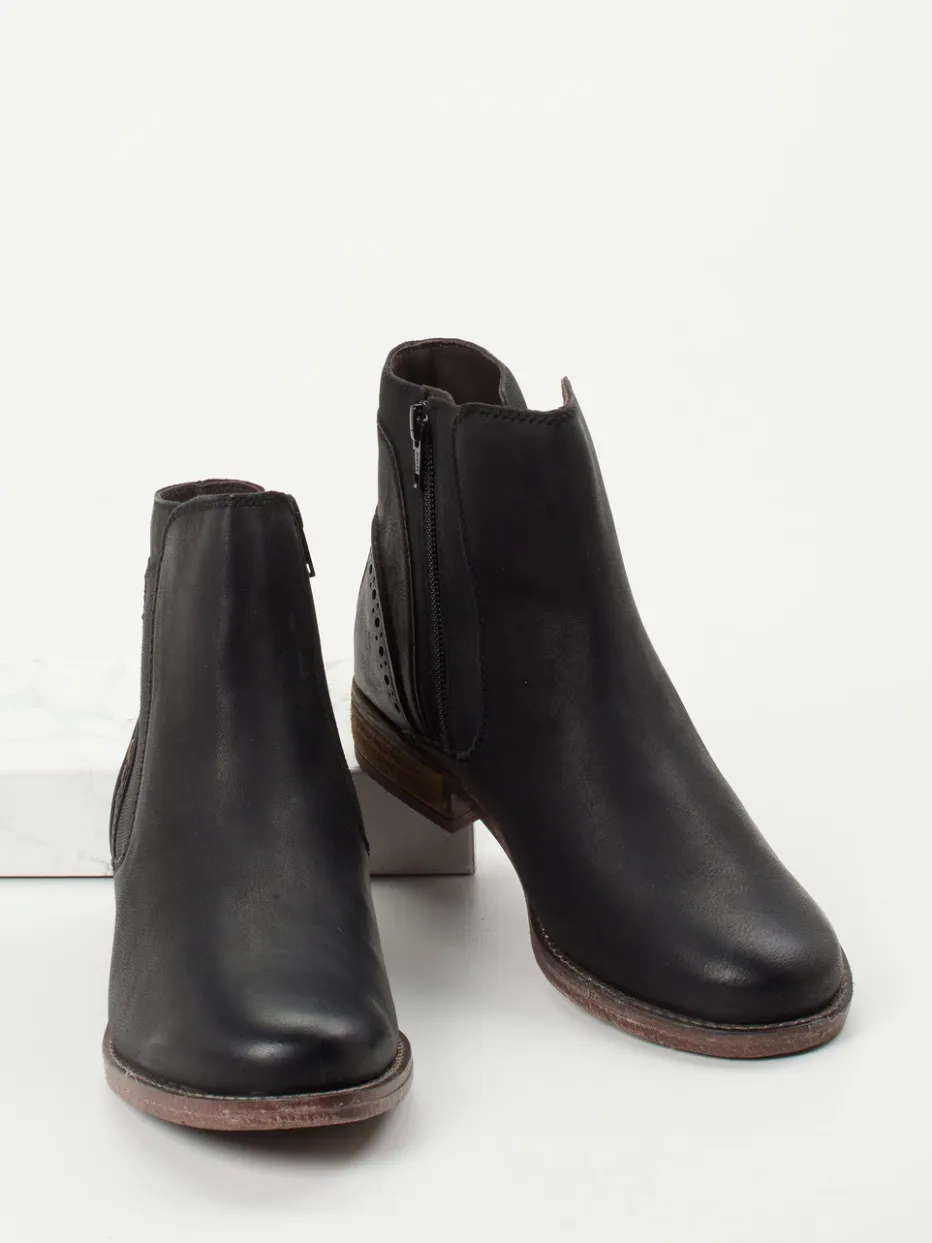 Vielseitigkeit trifft Understatement.Die Marke Josef Seibel präsentiert klassische Chelsea Boots aus geschmeidigem Ziegenleder. Für Büro und Freizeit perfekt geeignet, überzeugt das schwarze, matt strukturierte Glattleder mit zuverlässiger Wetterresistenz. Tonige Elastikeinsätze und ein praktischer Innenreißverschluss unterstreichen die klare, knöchelhohe Form. Feine Lyralochungen an der Ferse und eine rötlichbraune Kontrastsohle mit mehrlagigem Absatz bringen dezente Vintage-Akzente ins Spiel. Ein wärmendes Innenfutter aus Microfaser und ein gepolstertes Fußbett sorgen für hohen Komfort. Optimal kombinierbar mit Stoffhose oder Denim in gedeckten Tönen. Zeitloser Stil mit solider Funktionalität – typisch Josef Seibel.