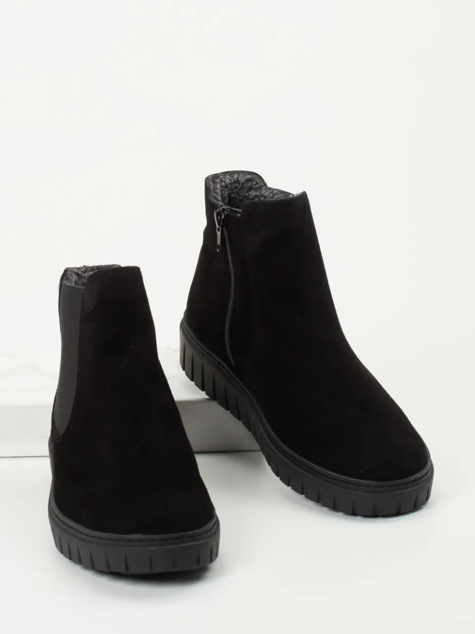 Die warme Fütterung, das samtige Veloursleder und die rutschfeste Profilsohle machen diese Chelsea-Stiefelette von Semler zu einem zuverlässigen Begleiter an kalten Tagen.