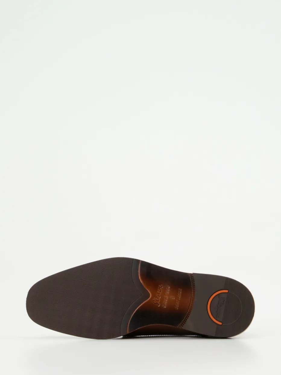 Glanzvoller Minimalismus für jeden Tag.Sioux interpretiert den klassischen Chukka Boot neu – aus hochwertigem Kalbleder gefertigt. Ein stilvoller Begleiter für Büro und Alltag überzeugt dieser knöchelhohe Herren-Boot durch sein mittelbraunes, glänzendes Finish und die klare Silhouette. Die 3-Loch-Schnürung, die Ton-in-Ton-Nähte und die seitliche Logo-Prägung unterstreichen den dezenten, minimalistischen Charakter. Die kombinierte Leder-Gummisohle mit fein profilierter Laufsohle bietet sicheren Halt auf urbanem Terrain. Ästhetik und Komfort fügen sich hier zu einem harmonischen Gesamtbild im Zeichen von „Quiet Luxury“. Durchdachtes Design von Sioux mit markentypischer Souveränität.