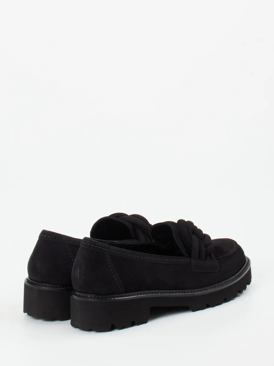 Ein moderner Loafer mit urbaner Ausstrahlung und klarer Formsprache. Die Kombination aus samtigem Veloursleder, Knoten-Applikation und profilierter Sohle verbindet Stil und Komfort überzeugend.