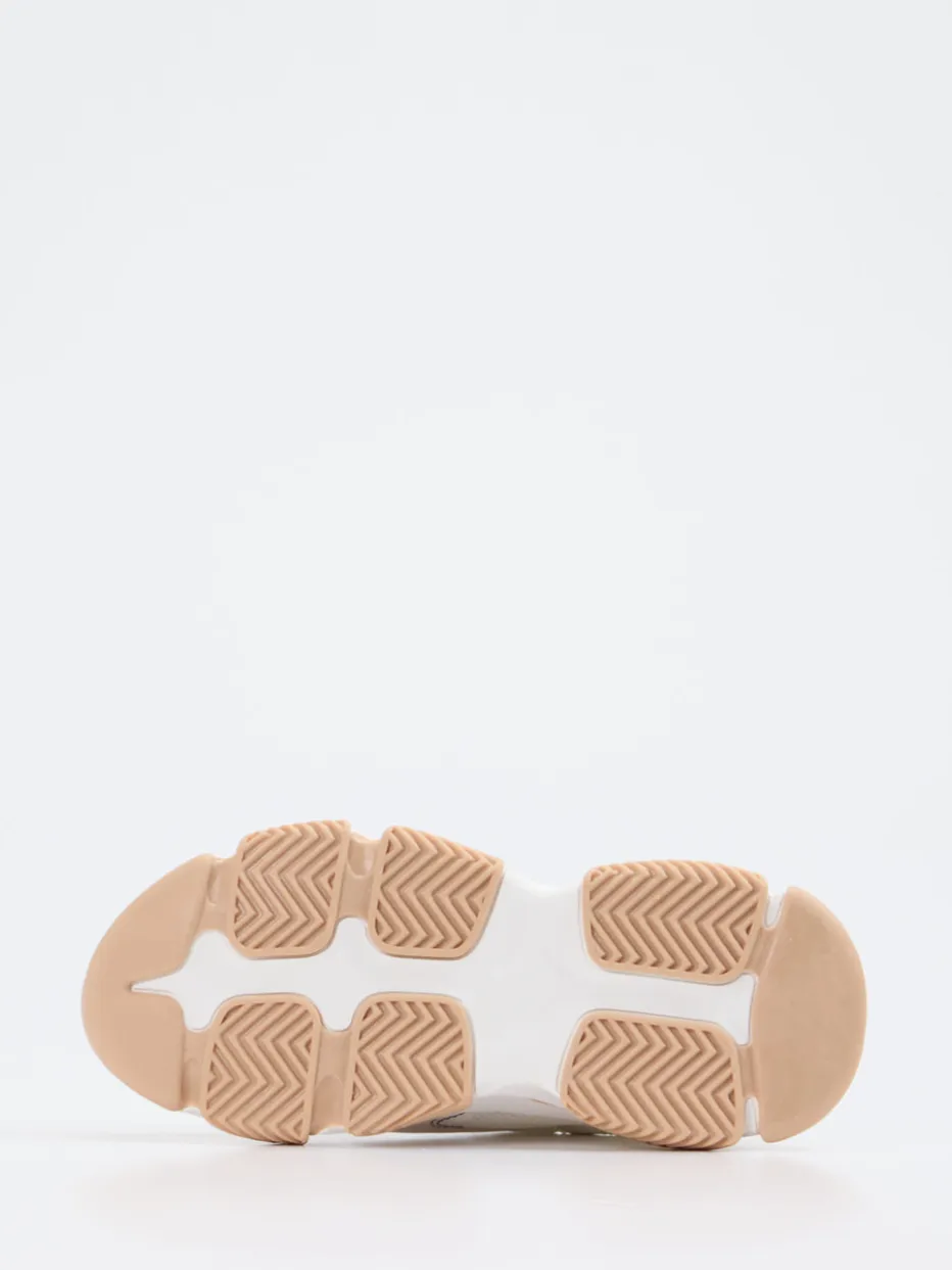 Chunky trifft auf Glanz.Steve Madden präsentiert mit diesem Sneaker ein expressives Modell im Streetstyle-Design. Ideal für urbane Looks mit Haltung: Der Damensneaker kombiniert atmungsaktives Mesh mit nudefarbenem Synthetik in matter Haptik und setzt mit roségoldenen Metallic-Elementen auffällige Akzente. Die wuchtige, mehrlagige Chunky-Sohle aus Gummi sorgt für optimalen Grip und modische Präsenz. Eine Zuglasche an der Ferse, das Logo seitlich und die klassische Schnürung runden das Design ab. Inspiriert von Y2K-Trends, passt er hervorragend zu Cropped-Hosen, Oversized-Hoodies oder Crossbody-Taschen in Metallic-Tönen. Ein Statement-Sneaker mit Streetwear-Finesse und Markenprofil.