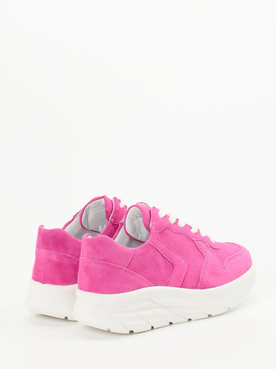 Statement in Pink.Der Damen-Sneaker von Semler vereint modischen Zeitgeist mit tragefreundlicher Ausstattung. Für sommerliche Citytouren oder Reisen ins Warme: Sein samtig angeschliffenes Veloursleder in kräftigem Pink wird durch weiße Schnürsenkel und tonale Nähte akzentuiert. Die voluminöse Chunky-Silhouette trifft auf eine griffig profilierte Gummisohle. Dank herausnehmbarem Fußbett, Weite H und Leder-/Textilfutter überzeugt er mit durchgehendem Komfort. Inspiriert von Retro Running und Y2K-Trends, setzt dieses Modell ein selbstbewusstes Fashion-Statement. Ideal kombiniert zu Oversized-Hosen oder monochromen Looks. Semler steht hier für Komfortmode mit ausdrucksstarker Trend-DNA.