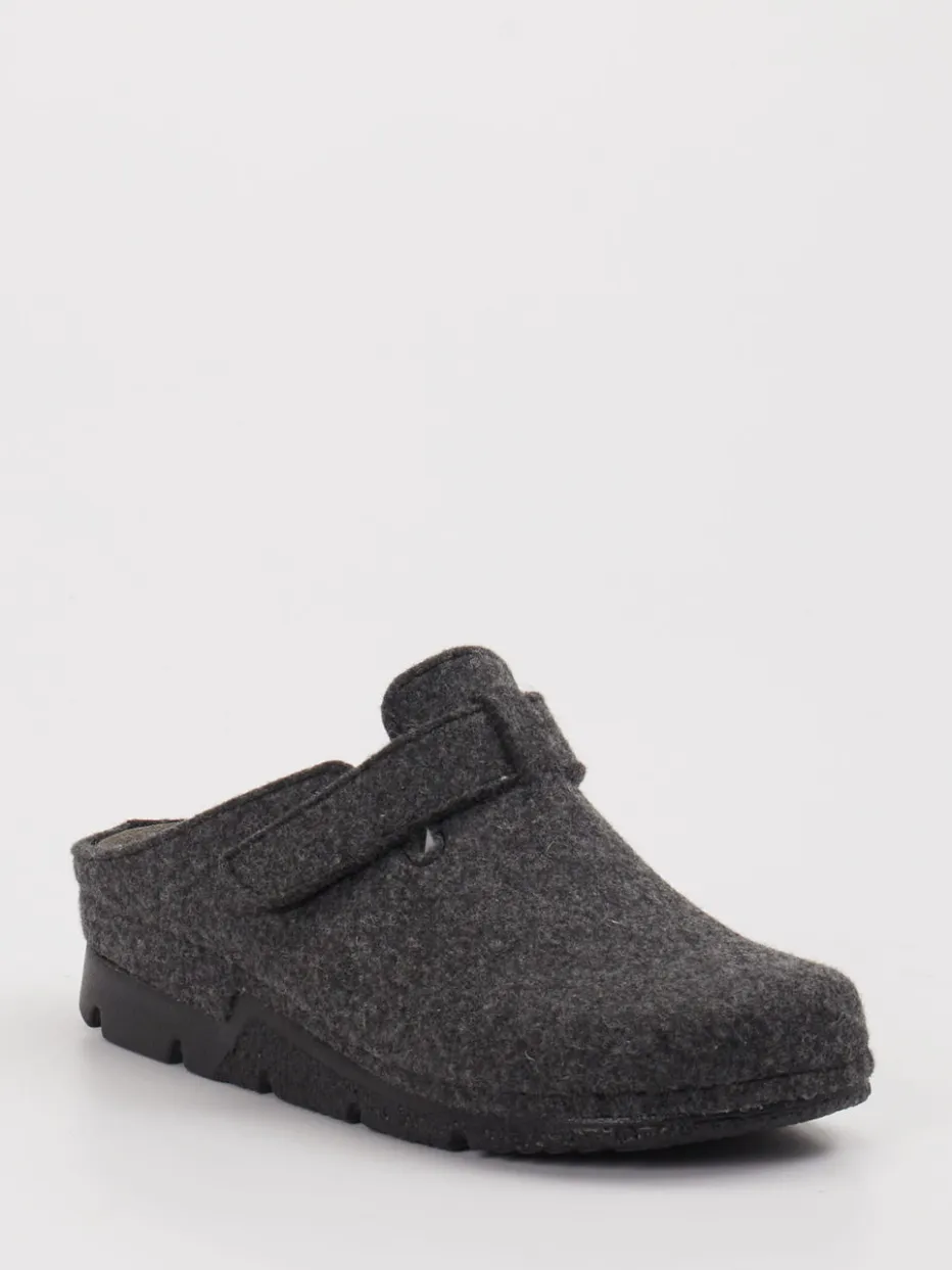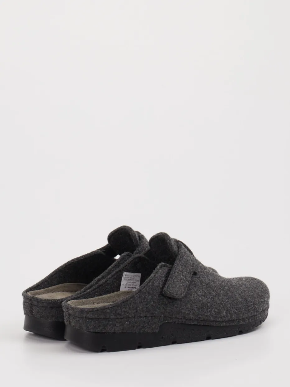 Komfort trifft Funktion im Loungewear-Stil. Berkemann präsentiert komfortable Clogs für Damen in grauem Filz – ideal für entspannte Momente daheim. Der weiche Filz mit glatter Oberfläche sorgt für angenehme Wärme, während das ergonomische Fußbett den Alltag komfortabel begleitet. Die offene Ferse und der praktische Klettverschluss erleichtern das Anziehen und garantieren eine optimale Passform. Die anthrazitgraue Farbgebung unterstützt den schlichten Look, während Ton-in-Ton-Nähte und die dezente Markenprägung funktionale Zurückhaltung zeigen. Die profilierte Gummisohle bietet Halt auf glatten Böden. Modisch orientiert sich das Modell an den Trends „Comfort Core“ und „Homewear Revival“. Ein durchdachter Hausschuh, der Design und Bequemlichkeit harmonisch vereint.