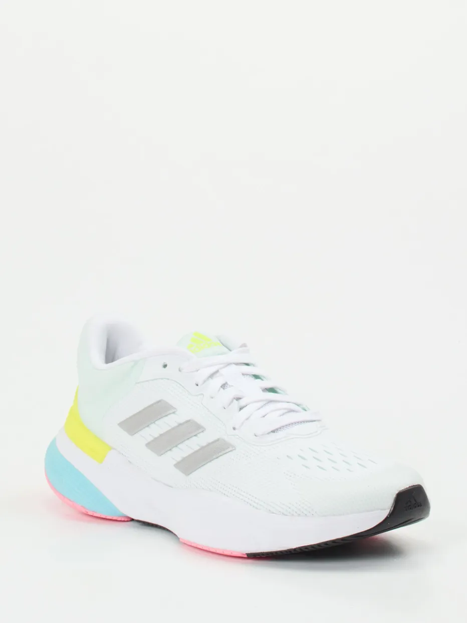 Trendlauf trifft Komfortzone.Adidas präsentiert mit diesem Sneaker einen sportlichen Laufschuh mit stilvollem Anspruch. Für tägliche Running-Einheiten oder als Streetstyle-Baustein im Athleisure-Look überzeugt das Modell durch ein atmungsaktives Textil-Obermaterial mit matter Mesh-Struktur. Die weiße Basis wird durch farbenfrohe Akzente in Hellblau, Neongelb und Hellrosa ergänzt – ideal für Pastelltrends der Saison. Eine Bounce-Dämpfung bietet dynamischen Laufkomfort, während reflektierende Logos und eine farbige Gummisohle mit griffigem Profil funktionale wie optische Akzente setzen. Technisch gedacht, modisch umgesetzt: ein Unisex-Schuh für sportlich-trendorientierte Looks. Adidas vereint sportliche Technologie mit urbanem Stylegespür – ideal für Frühjahr und Sommer.
