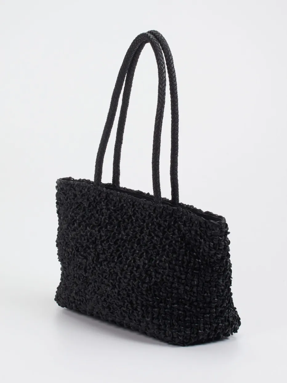 Eleganz trifft Funktionalität: Das geflochtene Leder in tiefem Schwarz verleiht dieser Shopper-Bag einen strukturierten Look mit sommerlicher Note.