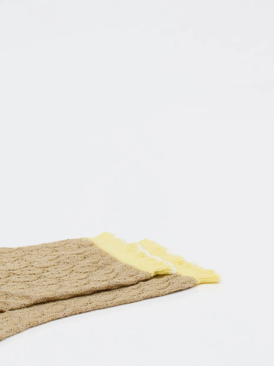Die Sneakersocke von Alto Milano vereint feines Strukturstrick mit femininen Akzenten und passt ideal in trendorientierte Sommer-Garderoben.