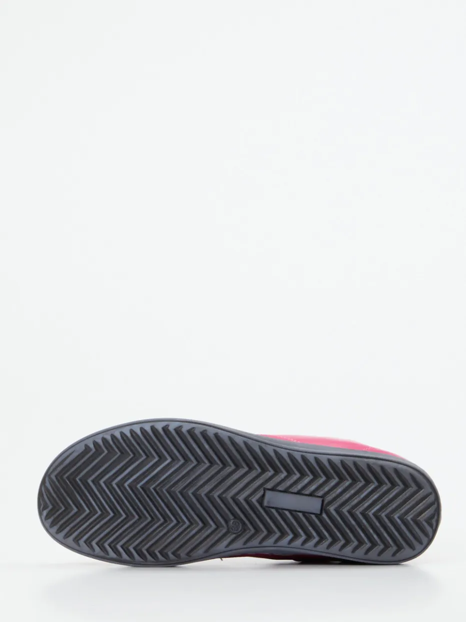 Farbstarke Leichtigkeit im Alltag.Andrea Conti präsentiert mit diesen Schnürboots eine lässige Damen-Stiefelette für stilbewusste Freizeitlooks. Die Kombination aus hochwertigem Kalbleder und matter Oberfläche kommt in intensivem Pink besonders modern zur Geltung. Die schlanke Silhouette und der seitliche Reißverschluss verbinden Komfort mit zeitgemäßem Design. Silberfarbene Ösen und tonige Nähte setzen dezente Akzente, während die flexible graue Gummisohle mit Fischgrätprofil für sicheren Halt sorgt. Inspiriert von Streetwear und aktuellen Farbtrends wie Color-Blocking ergänzt dieses Modell entspannte Outfits mit modischer Präzision. Andrea Conti überzeugt hier mit trendstarker Alltagstauglichkeit und bequemem Designanspruch.
