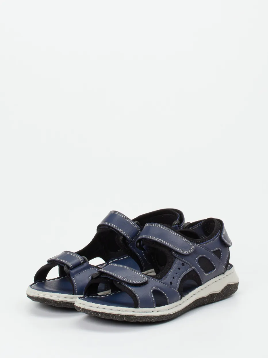 Bewegungsfreiheit trifft Tragekomfort.Andrea Conti präsentiert eine Trekkingsandale für Damen, gefertigt aus dunkelblauem Kalbleder mit weißen Kontrastnähten. Die Sandale eignet sich perfekt für Freizeit, Spaziergänge oder Urlaubsstreifzüge. Das samtig-matt strukturierte Kalbleder mit Textilfutter erzeugt ein angenehmes Fußklima. Durch individuell einstellbare Klettverschlüsse und gepolsterte Riemen passt sich das Modell flexibel an. Die flexible Poro-Sohle mit ergonomischer Form bietet griffigen Halt auf vielfältigem Untergrund. Die modisch-funktionale Anmutung harmoniert mit Casualwear ebenso wie mit Outdoor-Outfits. Ein zuverlässiger Begleiter von Andrea Conti mit alltagstauglichem Komfortprofil.
