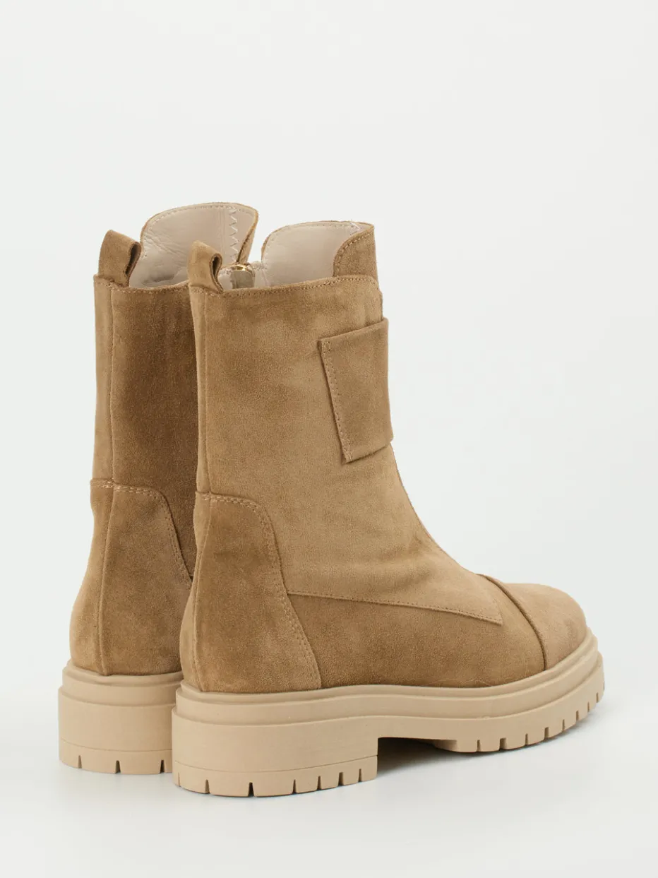 Die Marke Andrea Puccini interpretiert klassische Combat-Stiefeletten in hochwertigem Veloursleder neu.